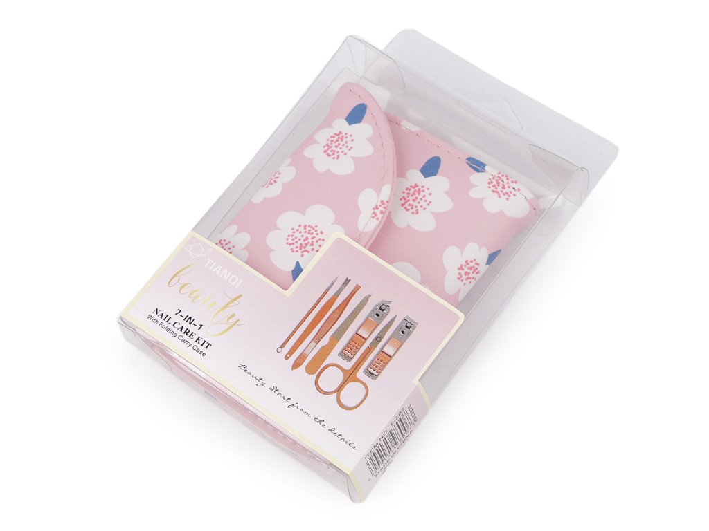 Manikúrovou sadu v pouzdře s květy využijete doma i na cestách. Pohodlně se vejde do kabelky, uzavírá se na patent.