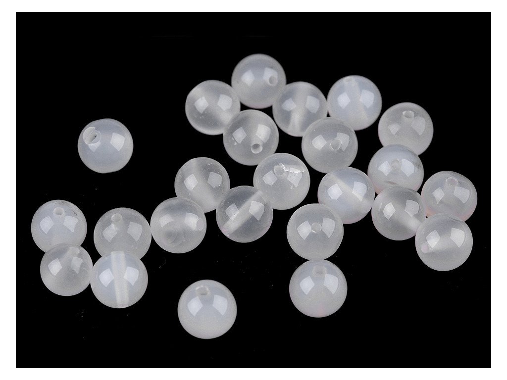 Přírodní minerální korálky z bílého achátu jsou jedinečné svou poloprůsvitnou, mléčnou barvou. Svou velikostí jsou ideální na výrobu Buddhových náramků a jiných šperků. Jsou oblíbené na techniku drátování, v kombinaci s drahými kovy, ale i s obyčejnými drátky. Skvěle vypadají i na jednoduchých návlekových šňůrách, které zajímavě ozvláštní.