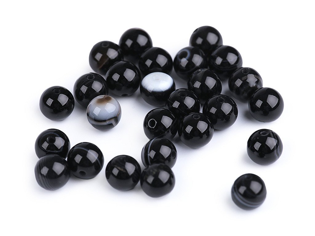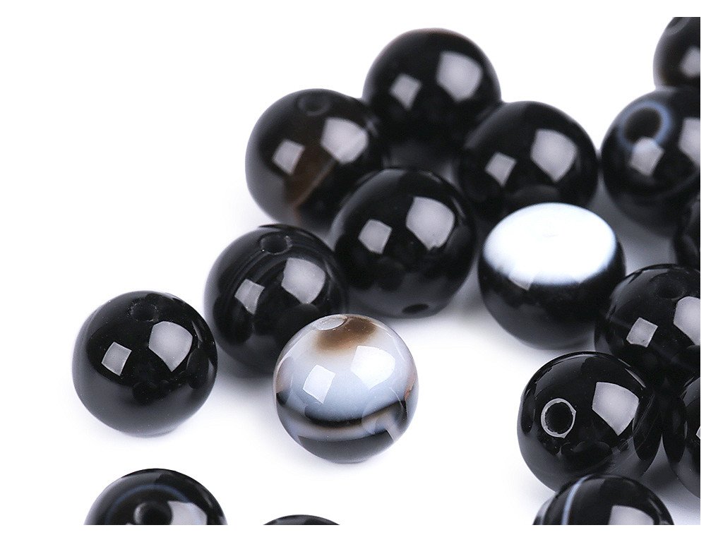 Korálky z černého achátu jsou oblíbené především šperkaři pro svou jedinečnou kresbu a barvy. Svou velikostí jsou ideální na výrobu Buddhových náramků. Jsou oblíbené na techniku drátování, v kombinaci s drahými kovy, ale i s obyčejnými drátky. Skvěle vypadají i na jednoduchých návlekových šňůrách , které zajímavě ozvláštní.