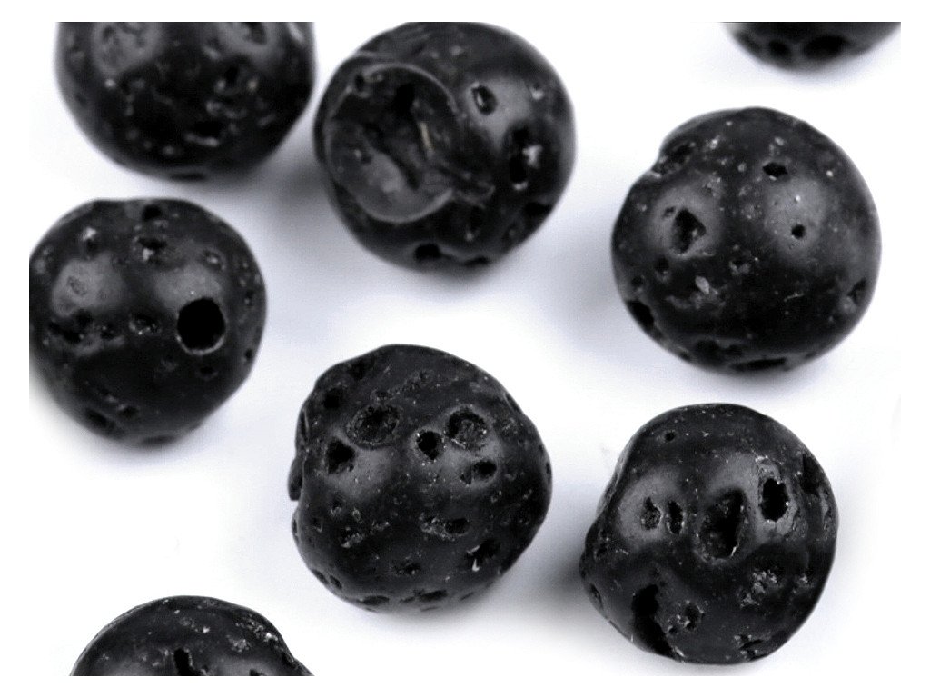 Minerální korálky z černé lávy jsou zajímavé svou pórovitou, ale přitom velice pevnou strukturou. Najdou široké uplatnění při výrobě šperků. Svou velikostí jsou ideální na výrobu jemnějších Buddhových náramků. Jsou oblíbené na techniku drátování, v kombinaci s drahými kovy, ale i s obyčejnými drátky. Skvěle vypadají i na jednoduchých návlekových šňůrách, které zajímavě ozvláštní. Černá láva je mezi šperkaři velice oblíbená pro svou neopakovatelnou strukturu.