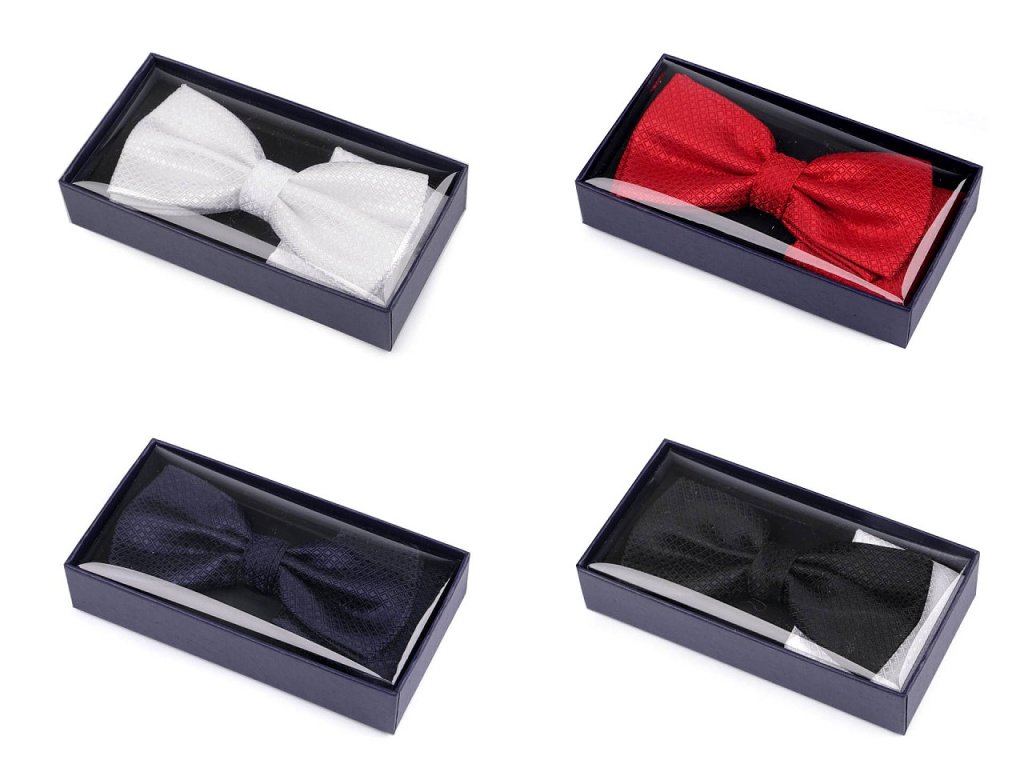 Motýlek je složený ze dvou, díky tomu je jeho tvar pěkně vyztužený. Je vázaný, padne všem, stačí jen utáhnout nastavitelný pásek kolem krku. Nejdelší délka pásku okolo krku je 47,5 cm. Zapínání je plastové, pásek je ze stejné tkaniny jako motýlek.