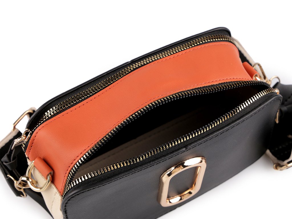Barevná crossbody kabelka je skvělou volbou pro ženy, které hledají funkčnost spojenou s módním vzhledem. Jejím zajímavým detailem je kovová ozdoba na přední straně.