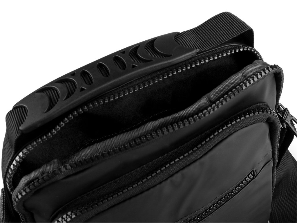 Má hlavní kapsu, která se zavírá na zip. V ní se nachází 1 menší přihrádka na drobnosti, která se také zavírá na zip. Na přední straně tašky je kapsa s klopou s magnetickým zapínáním. Na zadní vnější straně je poslední plochá kapsa na zip. Taška má napevno připevněný dlouhý nastavitelný popruh k nošení přes rameno nebo oblíbeným stylem cross-body (křížem) i pevné ucho do ruky.