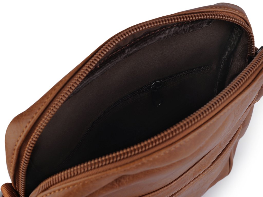 Má hlavní kapsu, která se zavírá na zip. V ní se nachází 2 přihrádky na drobnosti a 1 menší přihrádka, která se zavírá na zip. Na přední straně tašky jsou 2 ploché kapsy, větší se uzavírá na zip. Na zadní vnější straně je poslední plochá kapsa na zip. Taška má napevno připevněný dlouhý nastavitelný popruh k nošení přes rameno nebo oblíbeným stylem cross-body (křížem).