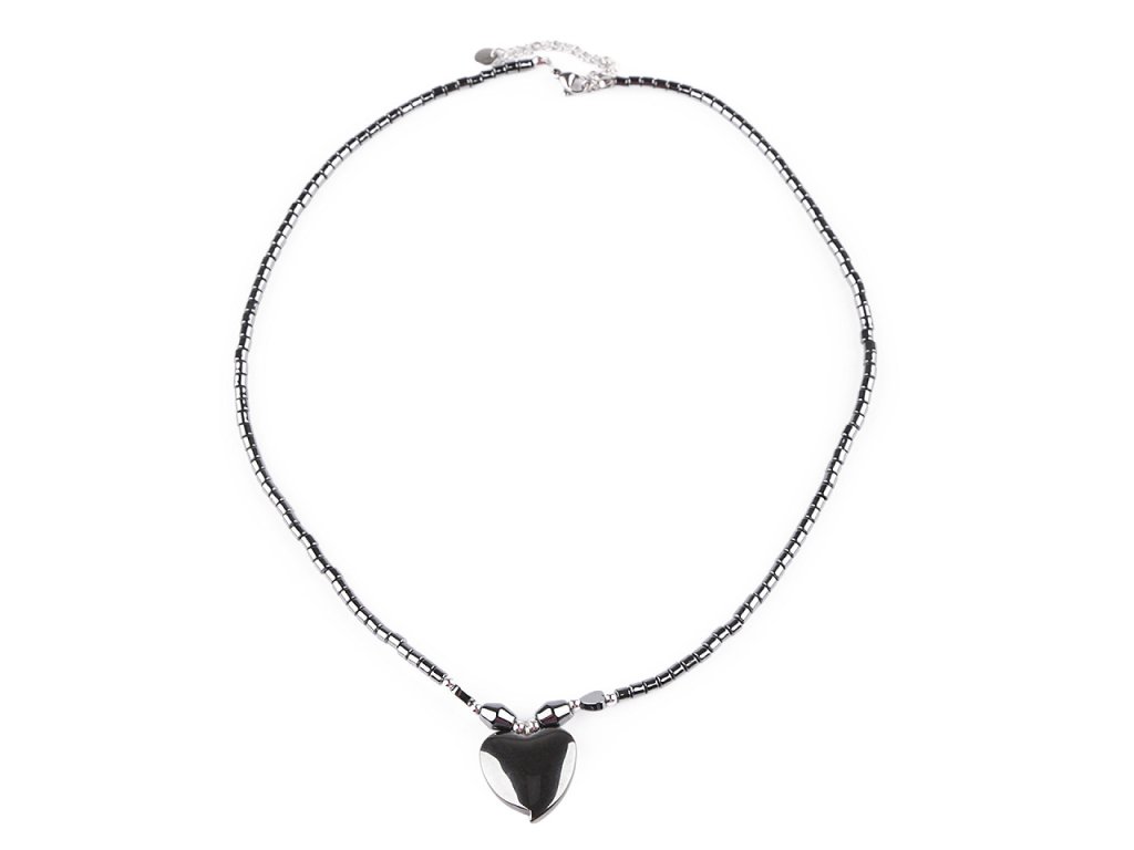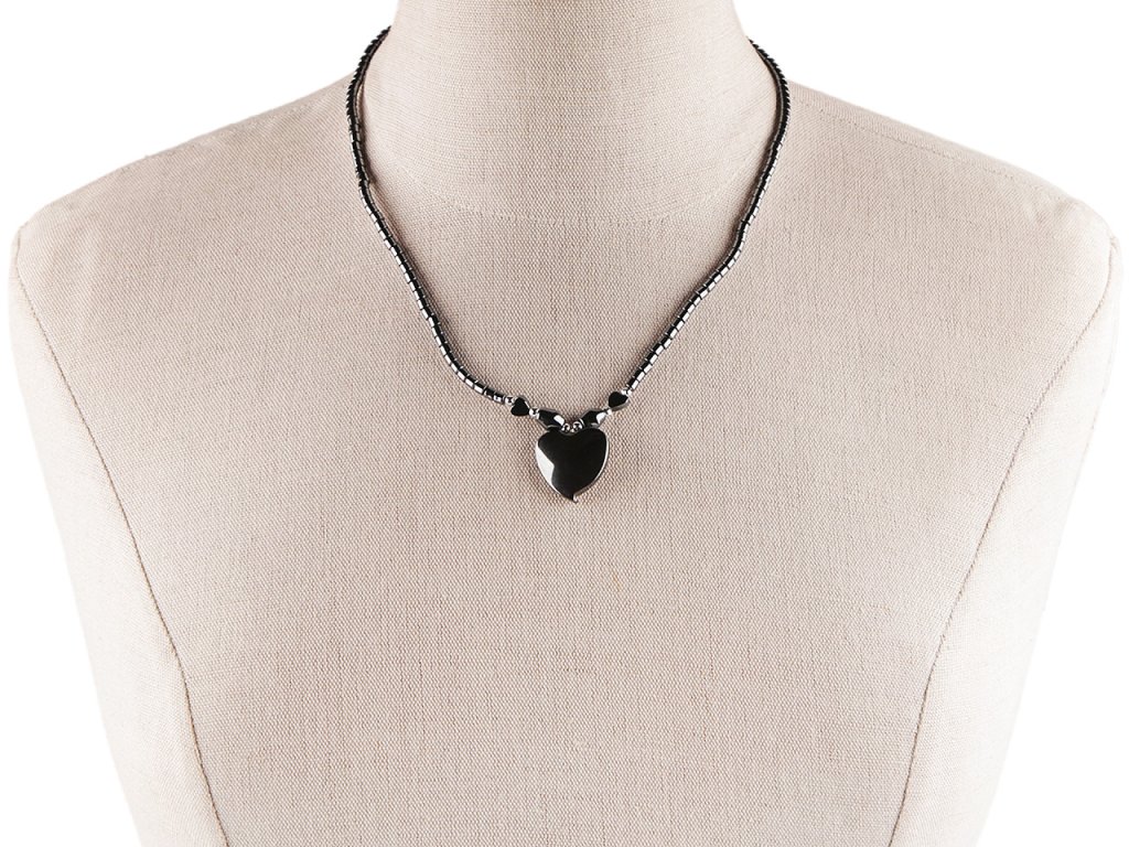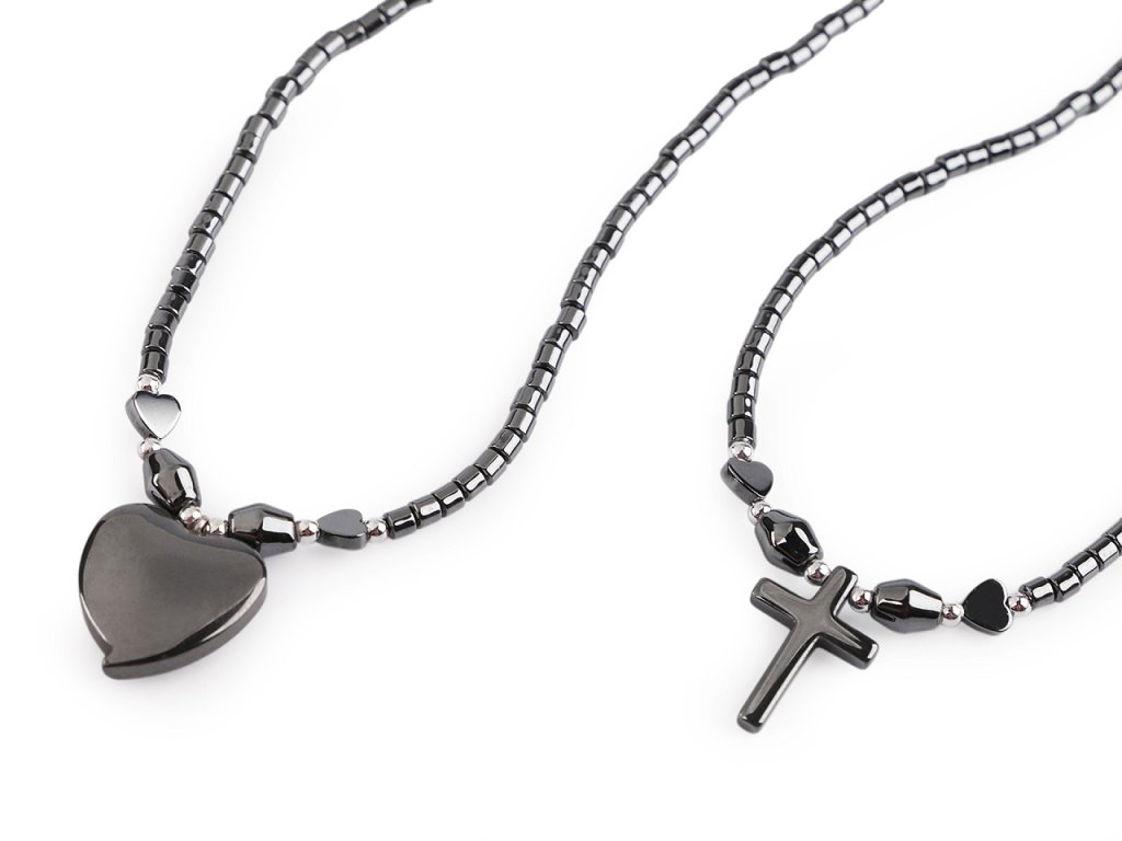 Poutavý náhrdelník vyrobený z korálků pokoveného hematitu a kvalitní nerezové oceli patří mezi šperky, které zaujmou na první pohled. Uprostřed je ozdobený výrazným přívěskem. Díky své univerzálnosti snadno doplní jakýkoliv outfit.