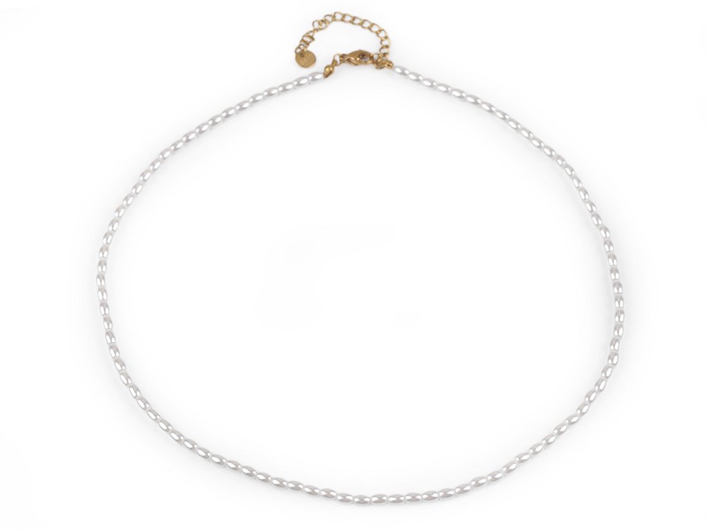 Jemný perlový náhrdelník je elegantní doplněk, který okamžitě upoutá pozornost svou jemností a nadčasovým designem. Potěší každou ženu, je dárkem, se kterým nešlápnete vedle. Hodí se ke slavnostním příležitostem jako jsou plesy, svatby, návštěvy divadel a různé večírky. Voskové perly mají oválný tvar, velice věrně napodobují perly pravé.