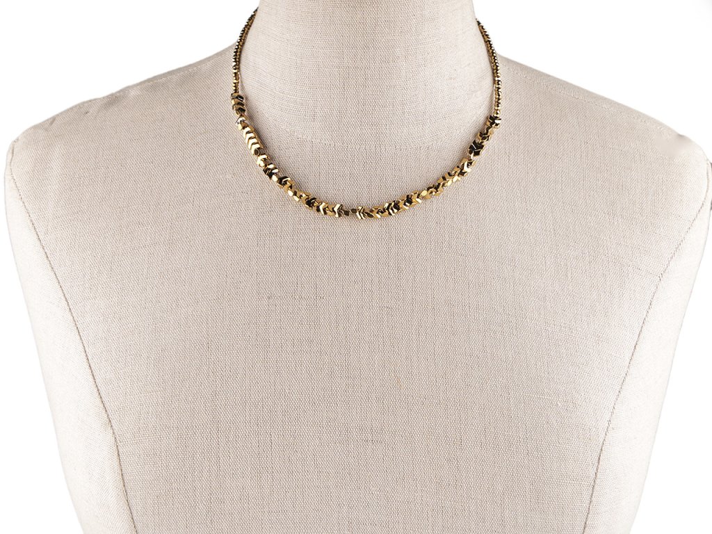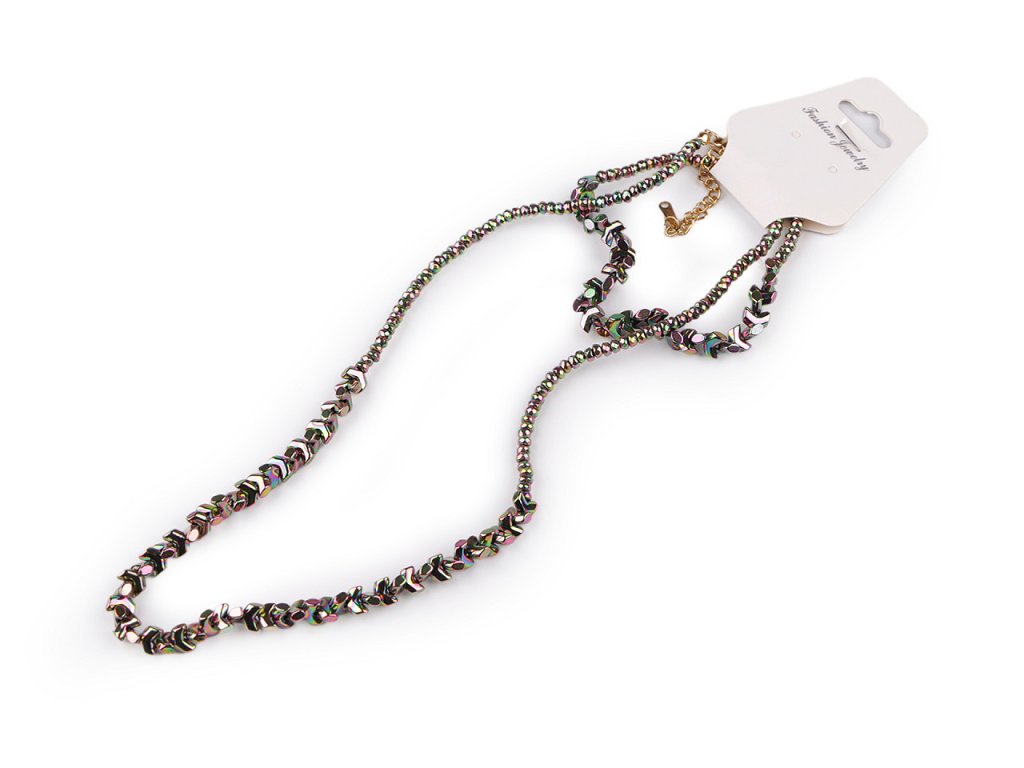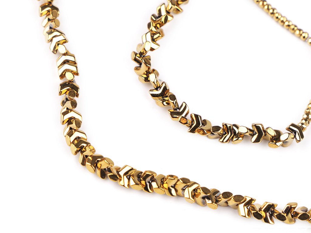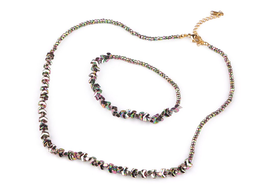 Sada elegantního náhrdelníku a náramku je vyrobená z korálků pokoveného hematitu a kvalitní nerezové oceli. Patří mezi šperky, které díky své fascinující povrchové úpravě zaujmou na první pohled, protože mají efektní světelné odlesky.