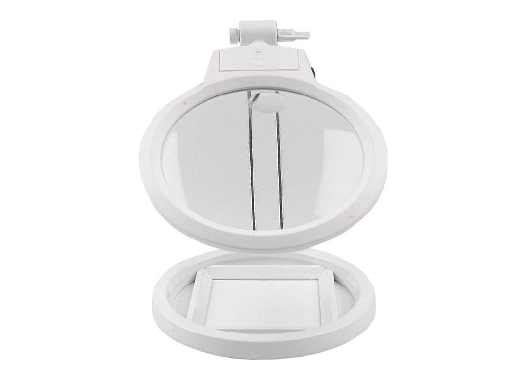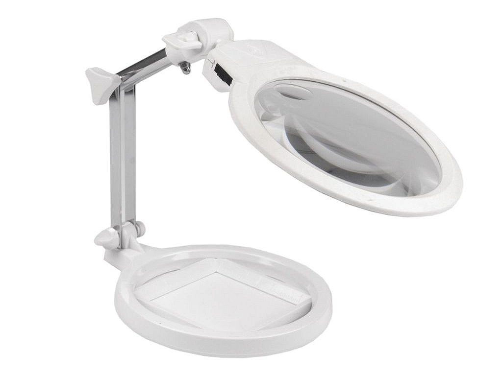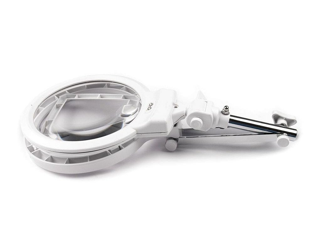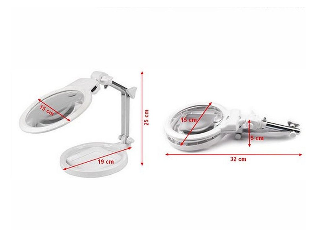 Složená lupa měří 5 x 15 x 32 cm. Při postavení rovně 15 x 19 x 25 cm.