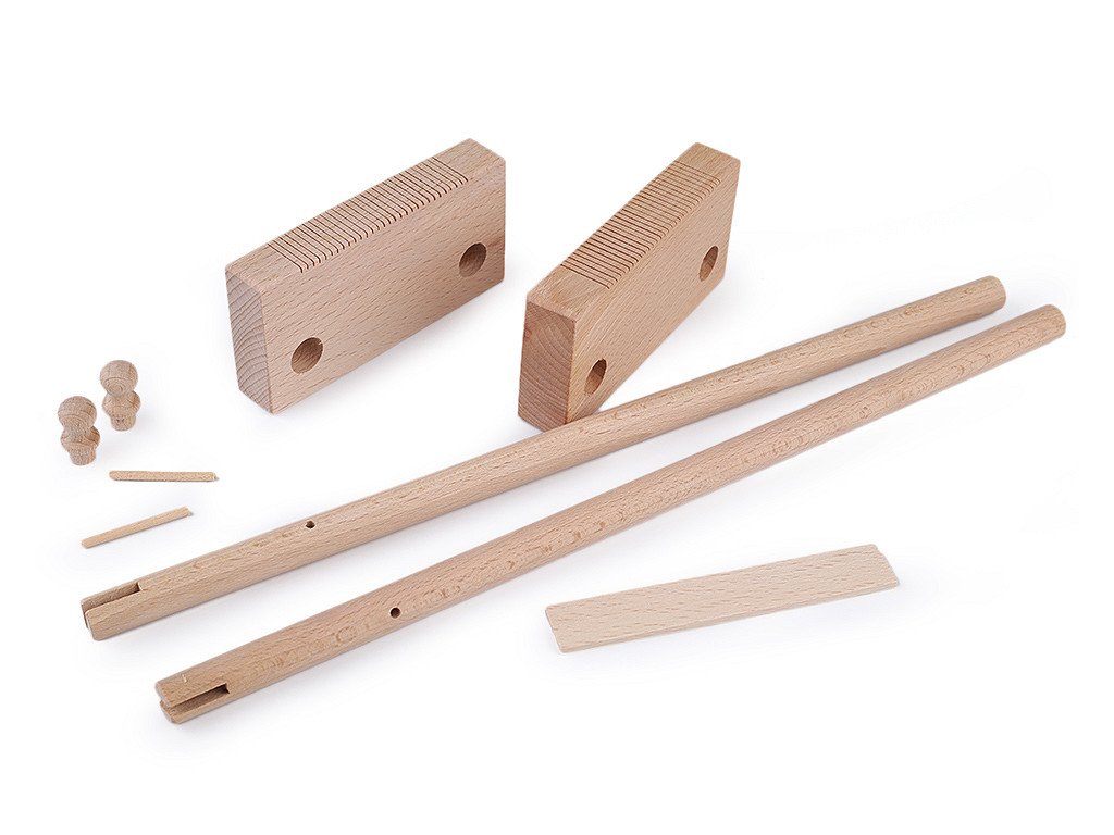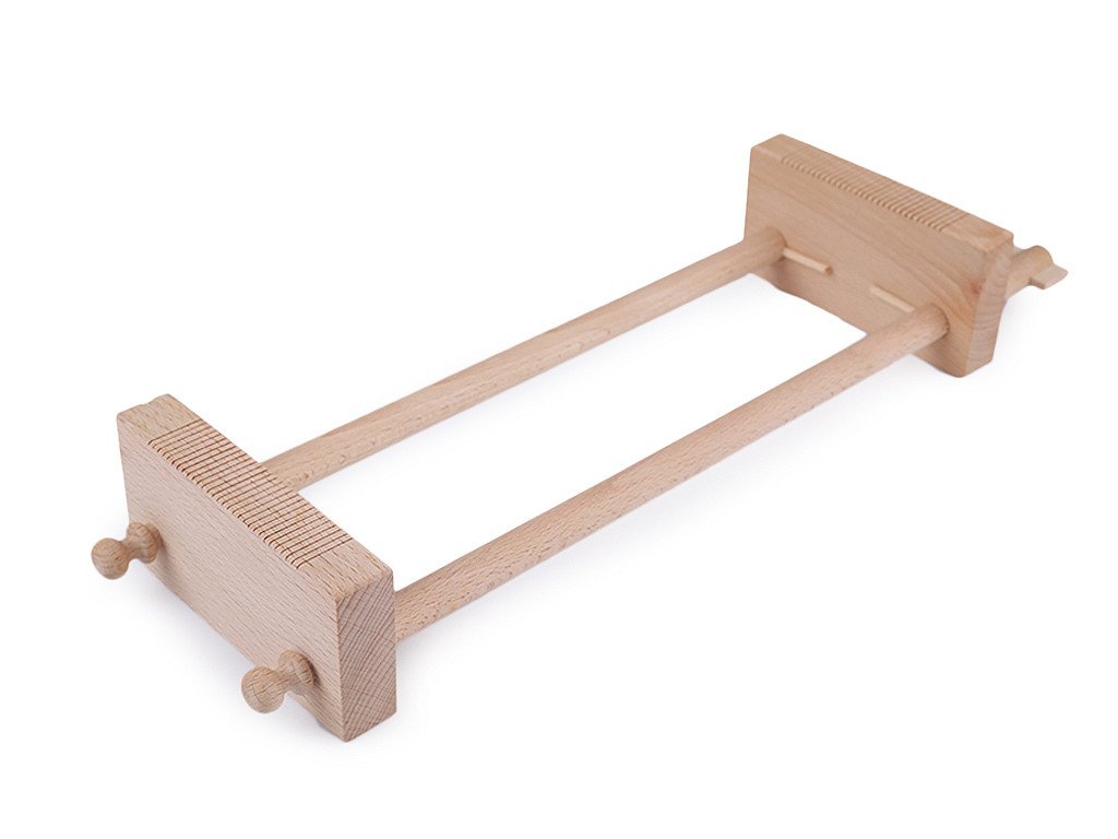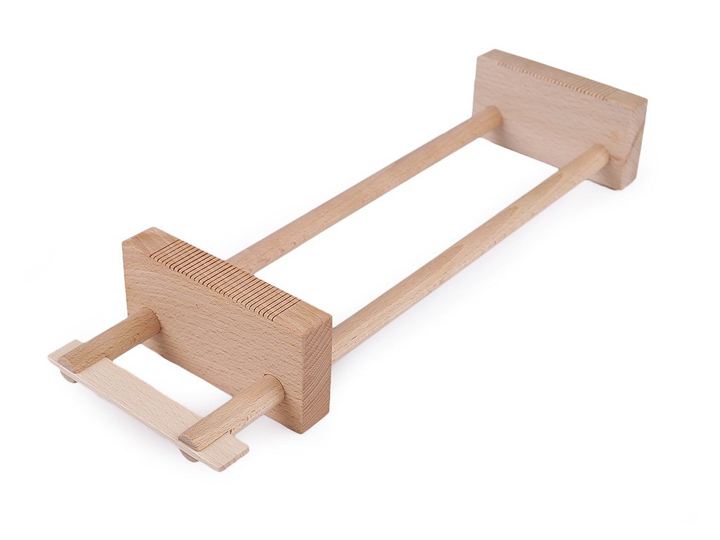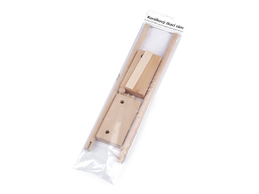 Korálkový tkací rám je určen k výrobě náramků, náhrdelníků, opasků a jiných oděvních doplňků.Rozměry rámu : 32 x 10 x 7cm (délka x šířka x výška). Vnitřní délka rámu je 23,5 cm, má zářezy na vypnutí 30 nití. Mezi zářezy je odstup cca 3 mm.