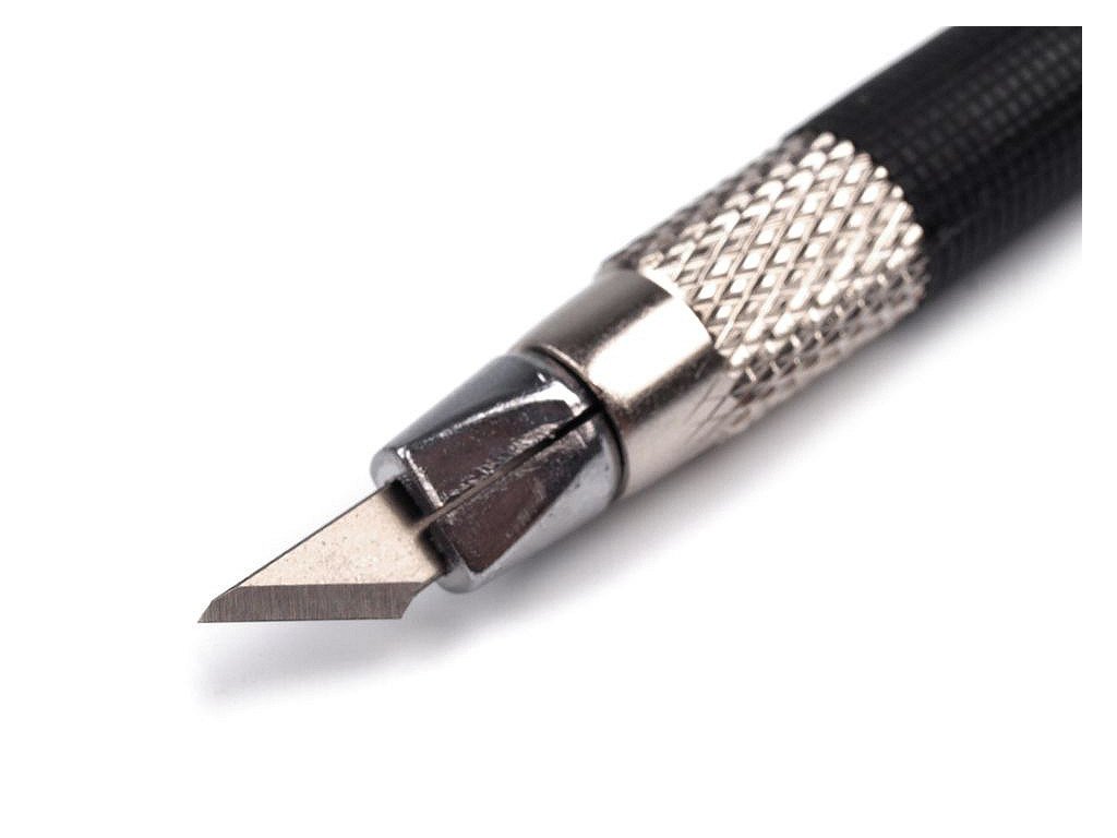 Ostrá čepel má krytku pro bezpečné a snadné uskladnění. Patří mezi speciální nástroje pro dosažení co nejpřesnějších řezů. Práce s řezákem je velice bezpečná.