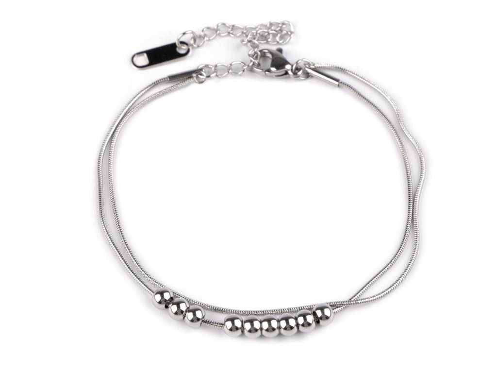 Dvouřadý hadí náramek je vyrobený z kvalitní nerezové oceli. Je ozdobený malými kulatými korálky s vysokým zrcadlovým leskem. Detailní zpracování a jednoduchý design z něj činí dokonalý módní doplněk pro jakoukoliv příležitost.