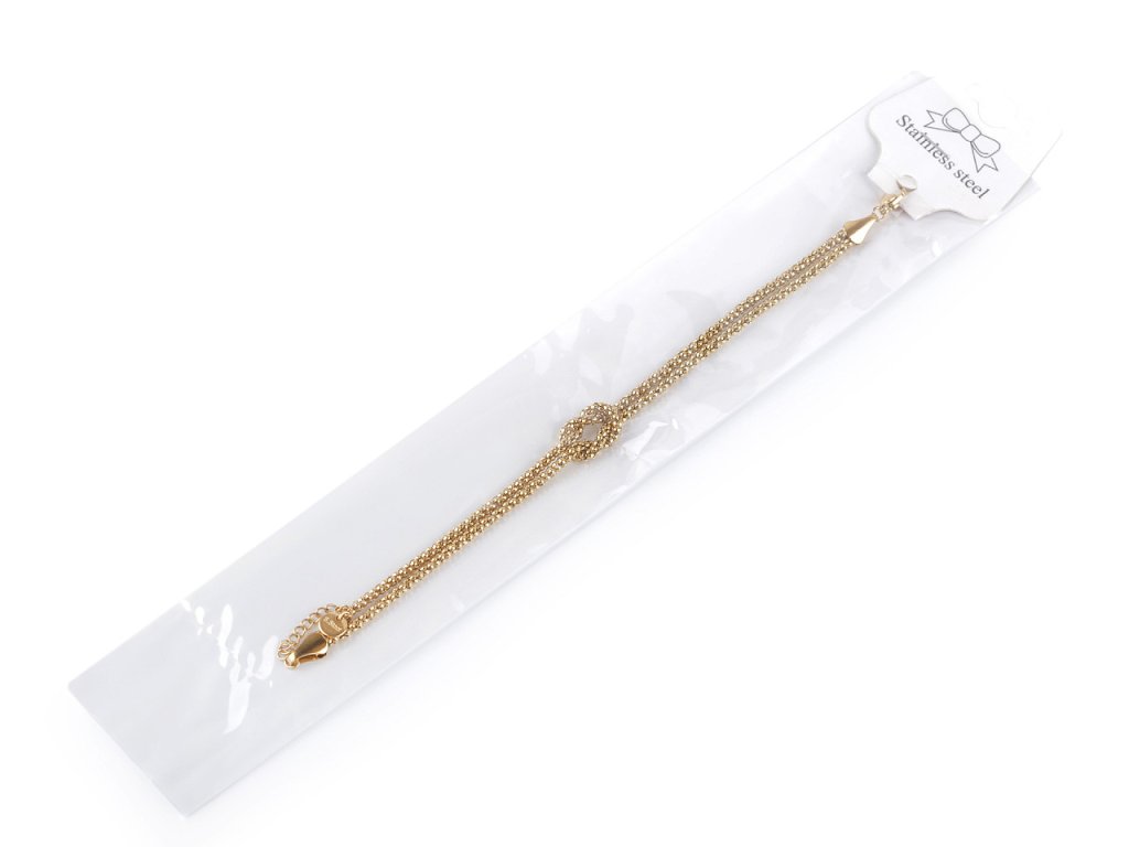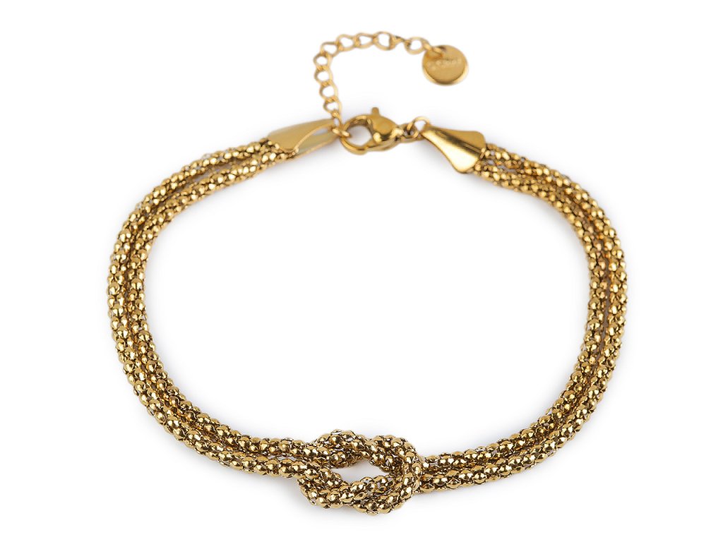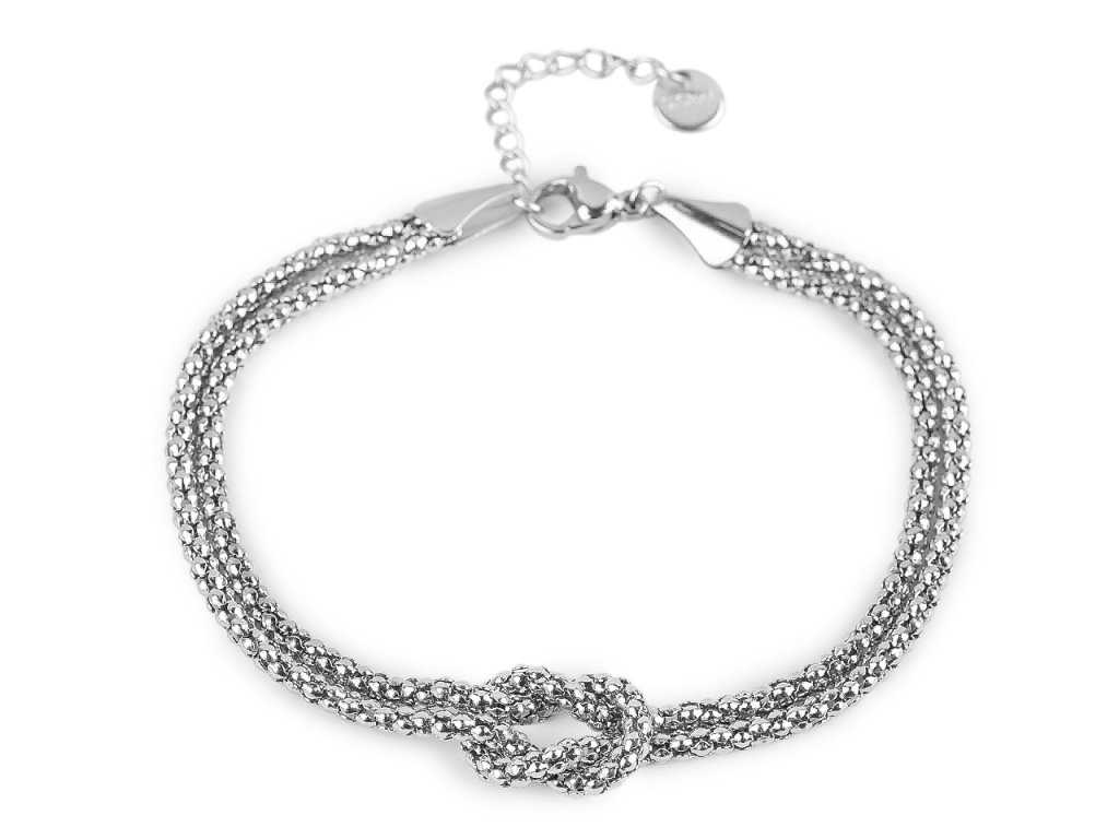 Dvouřadý náramek je vyrobený z kvalitní nerezové oceli. Ozdobným prvkem je uzel uprostřed náramku. Detailní zpracování a jednoduchý design z něj činí dokonalý módní doplněk pro jakoukoliv příležitost.