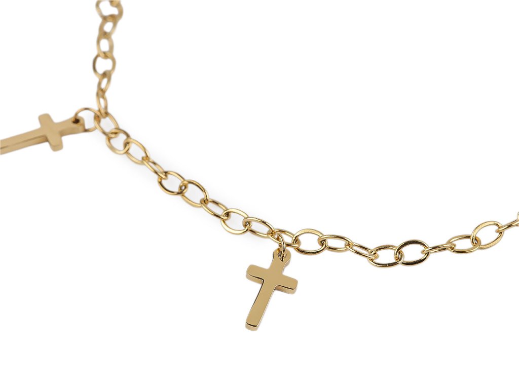 Náramek z nerezové oceli s křížky má jednoduchý a elegantní design. Je ideálním módním doplňkem pro každodenní nošení.