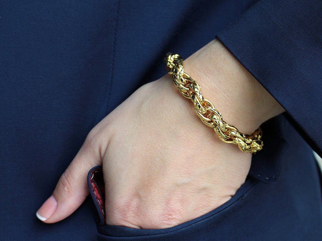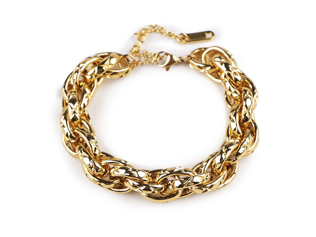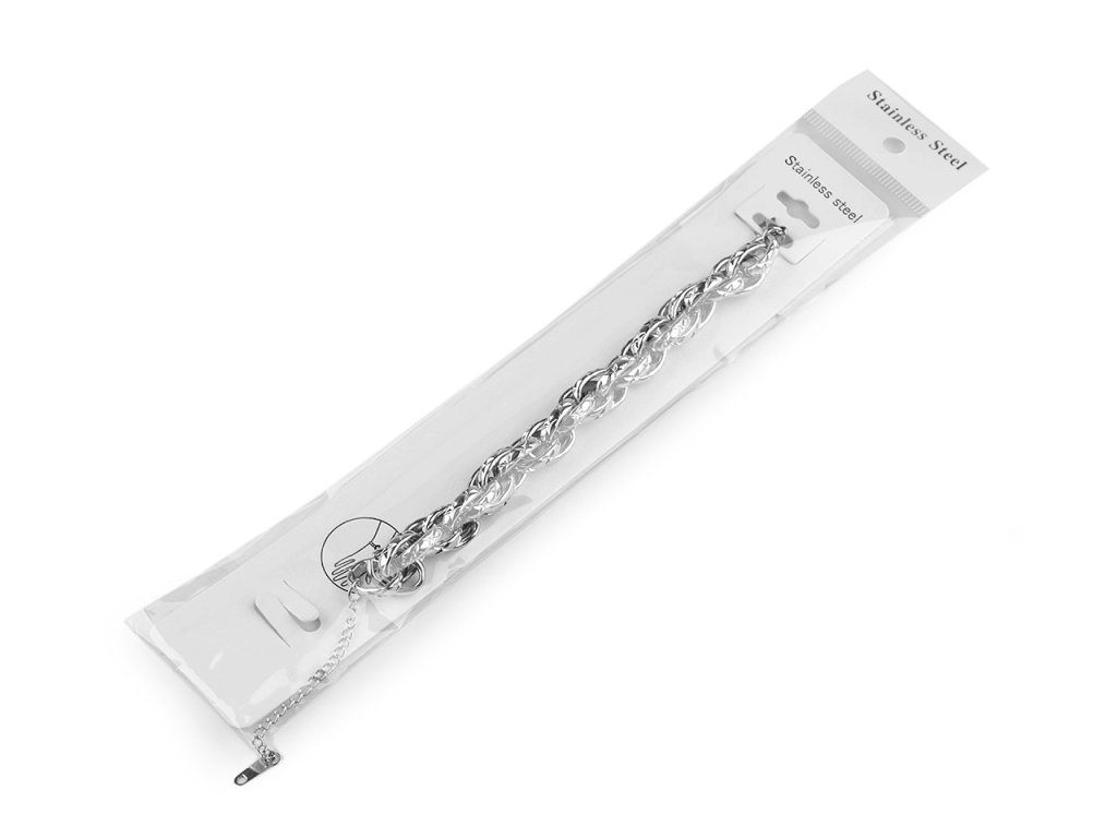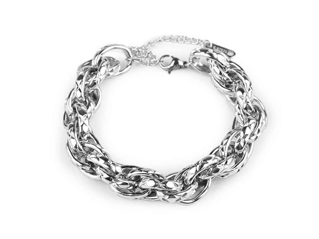 Výrazný dámský náramek z nerezové oceli má kvalitní zpracování v lesku. Jednotlivé kroužky jsou spirálovitě propojené, díky tomu je náramek nejen velice atraktivní, ale má i vysokou pevnost. Každý kroužek je ozdobený rytinami křížků. Náramek je jedinečný, dá se nosit jako doplněk k jakémukoliv outfitu.