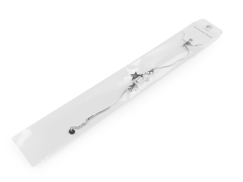 Hadí náramek z nerezové oceli má ve středu výraznou ozdobu z korálků a přívěsku s broušenými kamínky a s vysokým zrcadlovým leskem. Má kvalitní zpracování, poutavě dozdobí vaše zápěstí.
