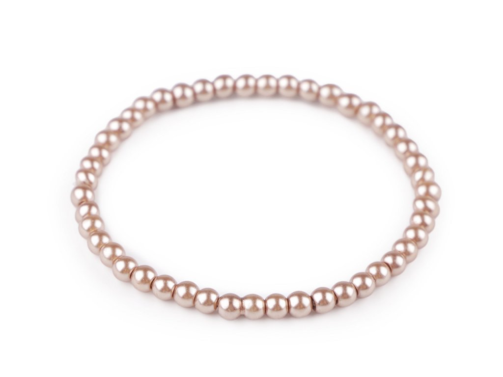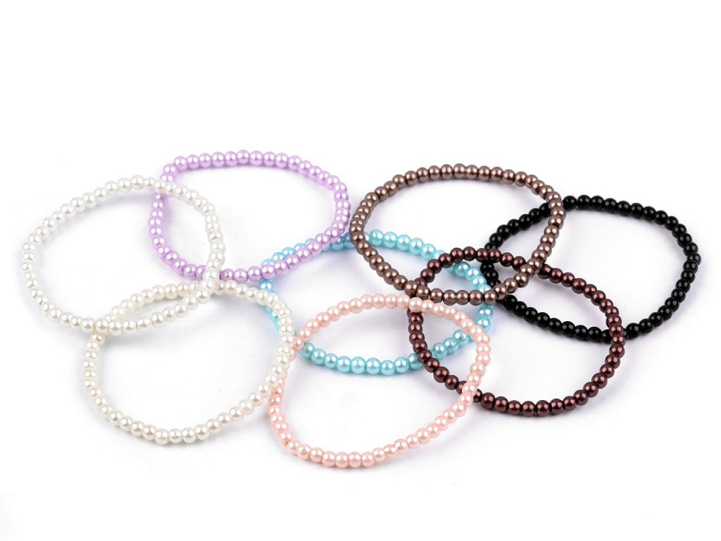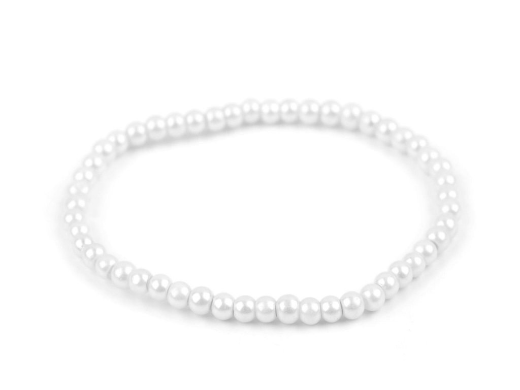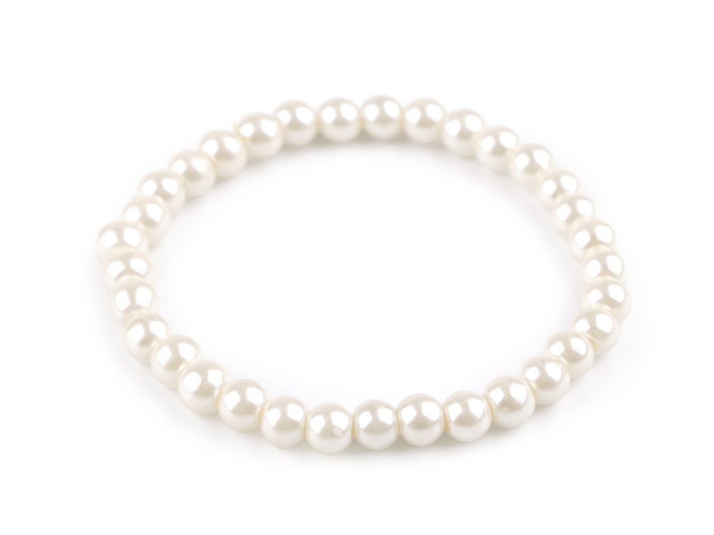 Elegantní náramek z voskovaných perel se efektně leskne. Perly jsou navlečené na pružence, proto se náramek snadno natáhne na ruku. Má univerzální velikost.