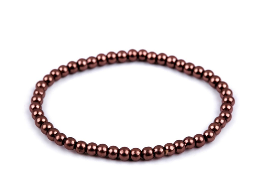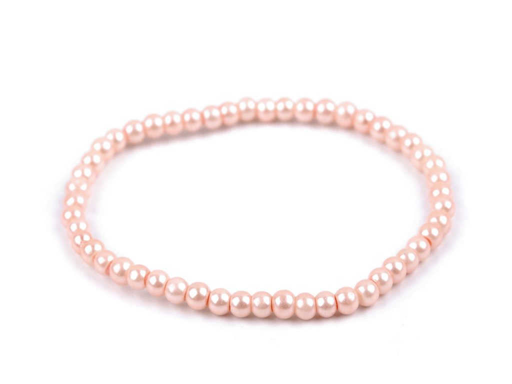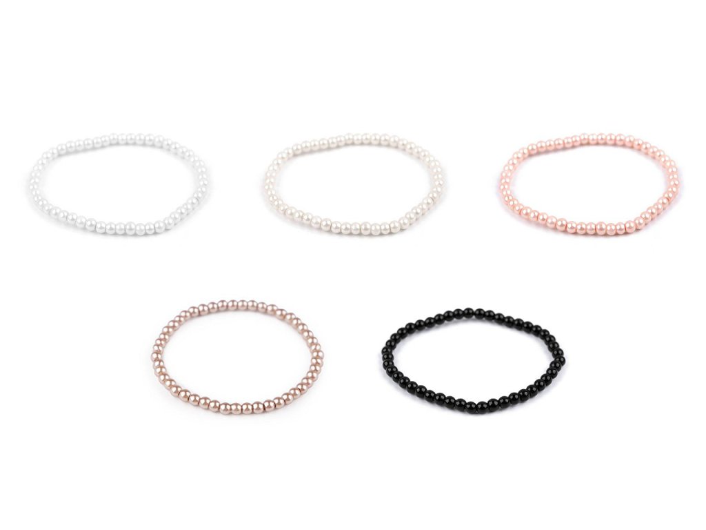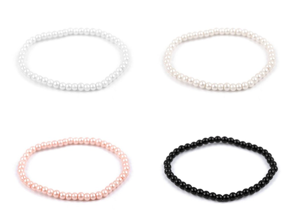 Elegantní náramek z voskovaných perel se efektně leskne. Perly jsou navlečené na pružence, proto se náramek snadno natáhne na ruku. Má univerzální velikost.