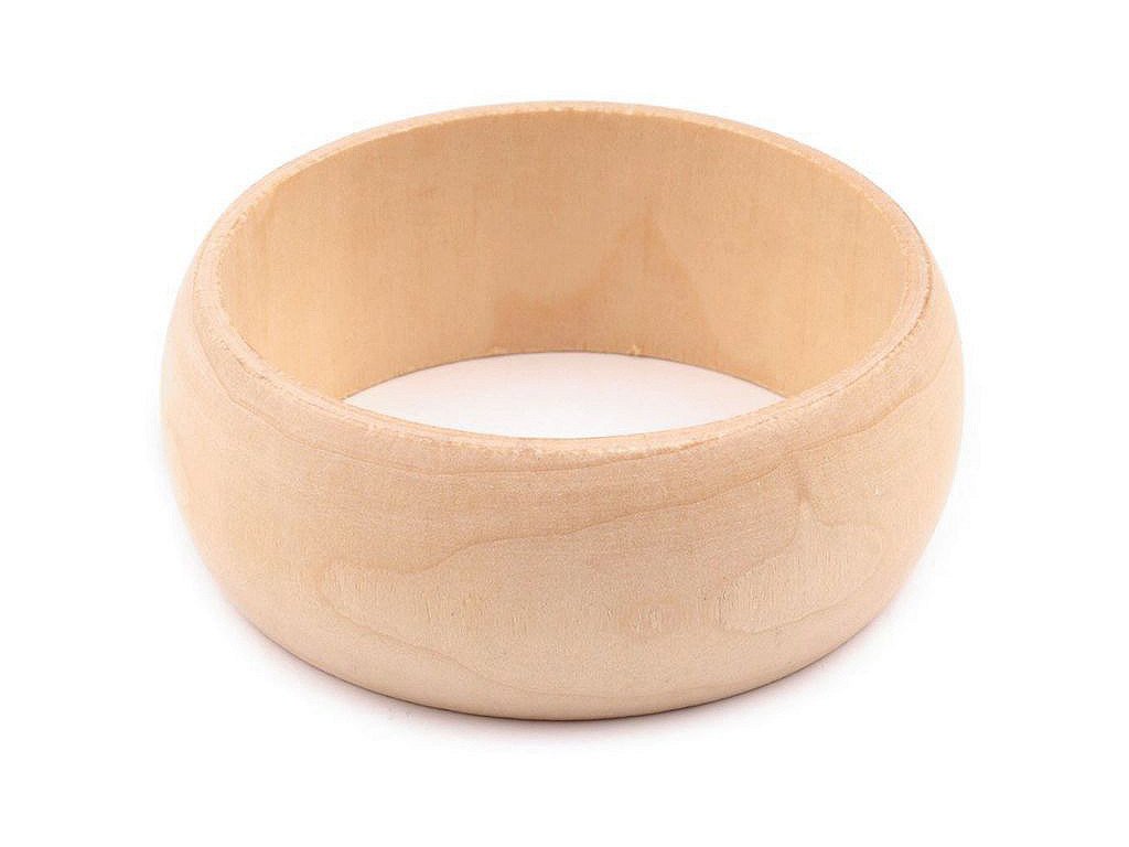 Dřevěný náramek v přírodním provedení, není lakovaný. Na povrchu mohou být světlá i tmavá místa. Jedná se o polotovar určený k další úpravě. Můžete jej nosit v tomto přírodním provedení nebo jej zpestřit měděným drátkem, akrylovými barvičkami, decoupage metodou, provázky, apod. Decoupage - z papírových ubrousků vystřihnete drobné motivy - květinky, srdíčka, hvězdičky apod. Pomocí lepidla na ubrousky je umístíte na náramek. Po zaschnutí se ještě zafixují vrchním lakem, aby se obrázky neodíraly.