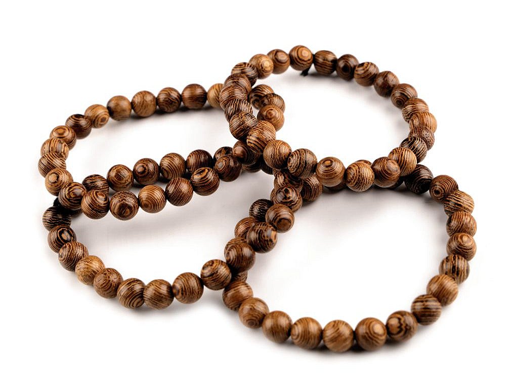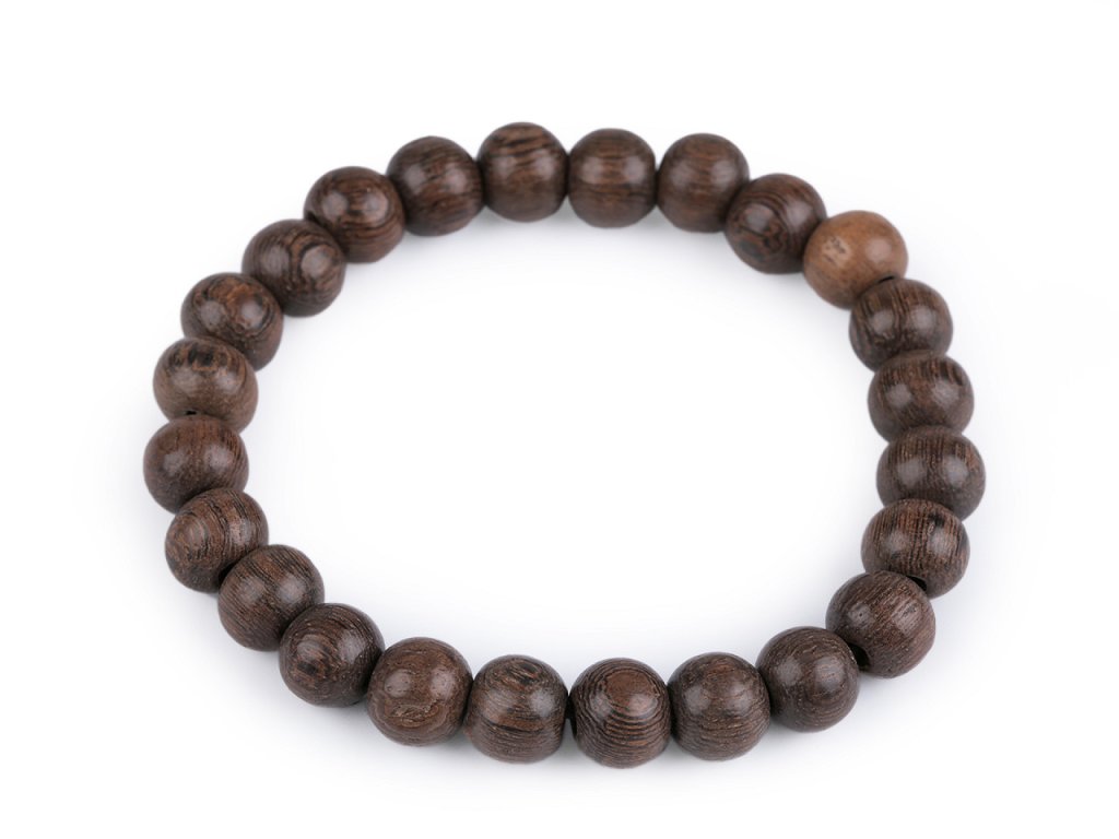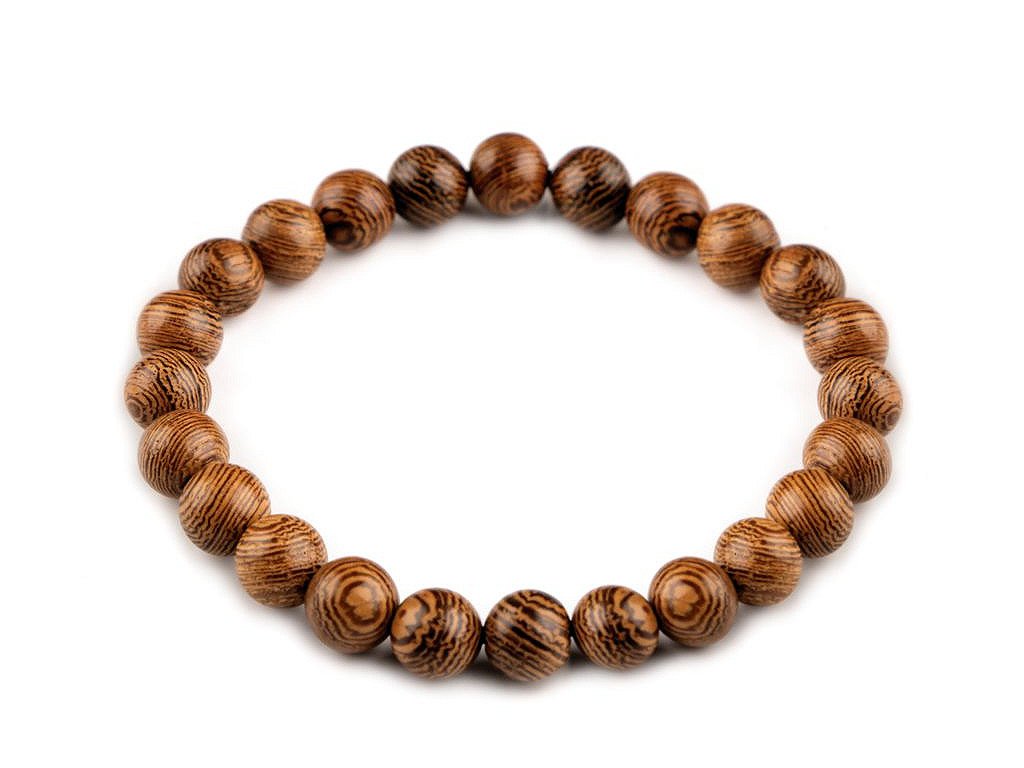 Náramek z dřevěných korálků ocení všichni milovníci přírodních materiálů. Díky svému neotřelému vzhledu se stane elegantním doplňkem, který lze využít i při společenských událostech. Náramek má díky lehce se natahující pružence univerzální velikost.