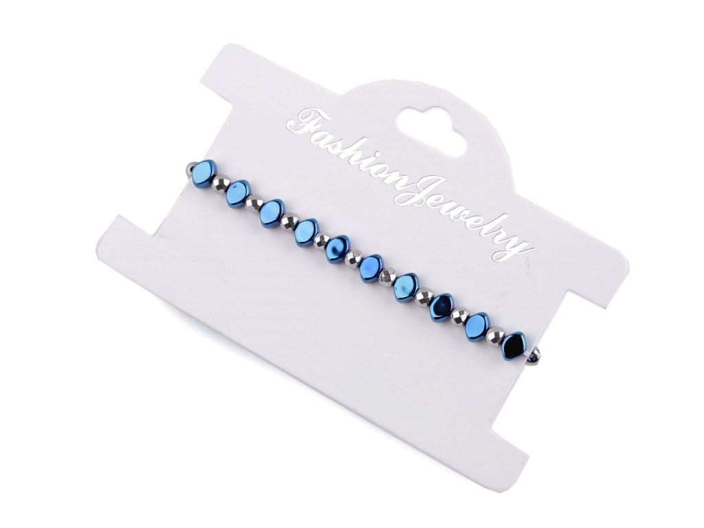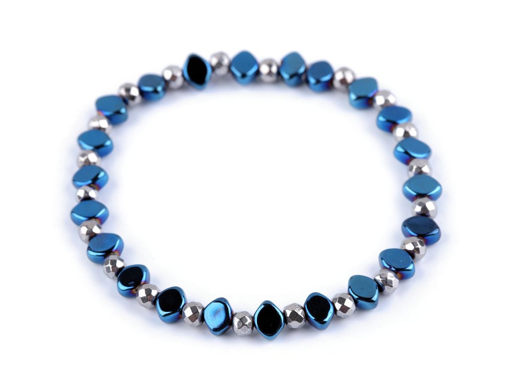 Elegantní náramek je vyrobený z broušených korálků pokoveného hematitu. Díky pružence se náramek snadno natáhne na ruku, má univerzální velikost. Hematitový náramek patří mezi šperky, které díky své fascinující povrchové úpravě zaujmou na první pohled. Broušené plošky vytvářejí efektní světelné odlesky. Náramek potěší každou ženu, je dárkem, se kterým nešlápnete vedle. Hodí se ke slavnostním příležitostem, skvěle podtrhne i business styl oblékání.