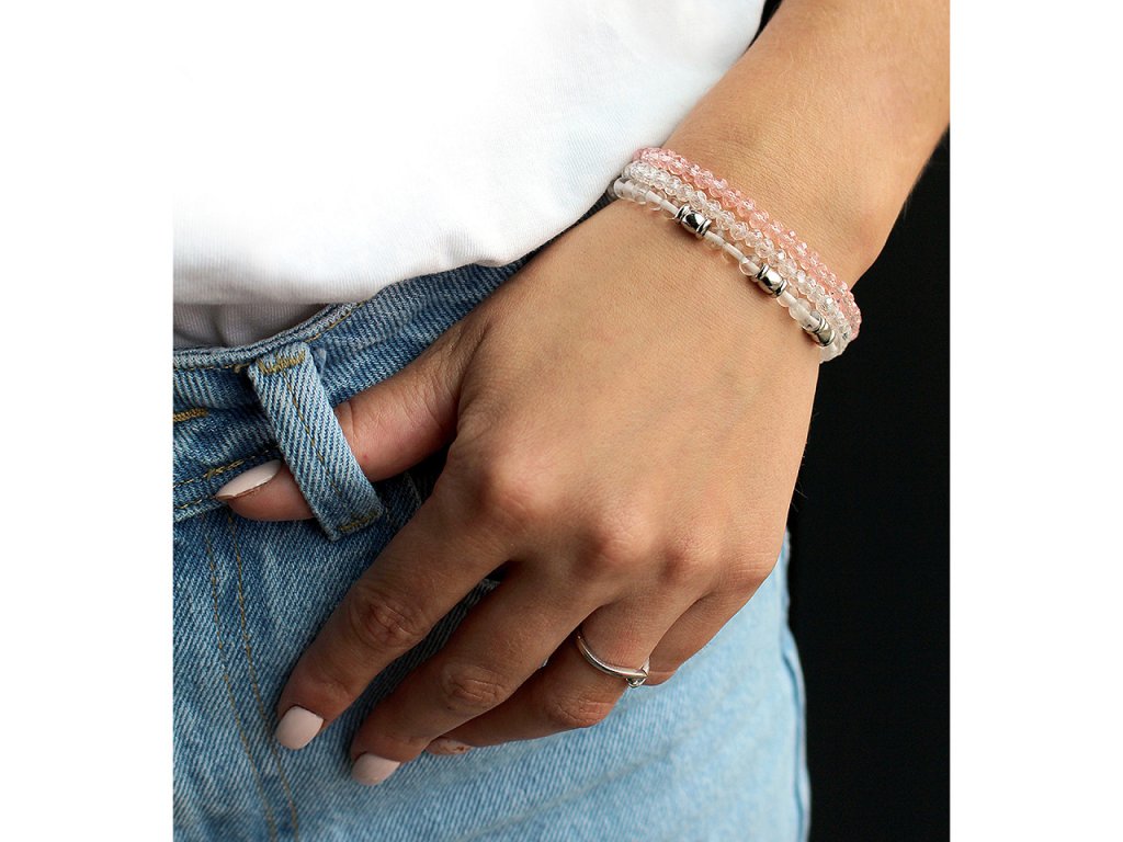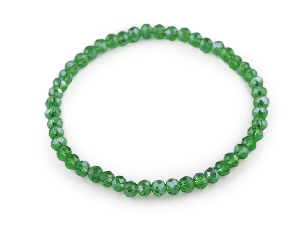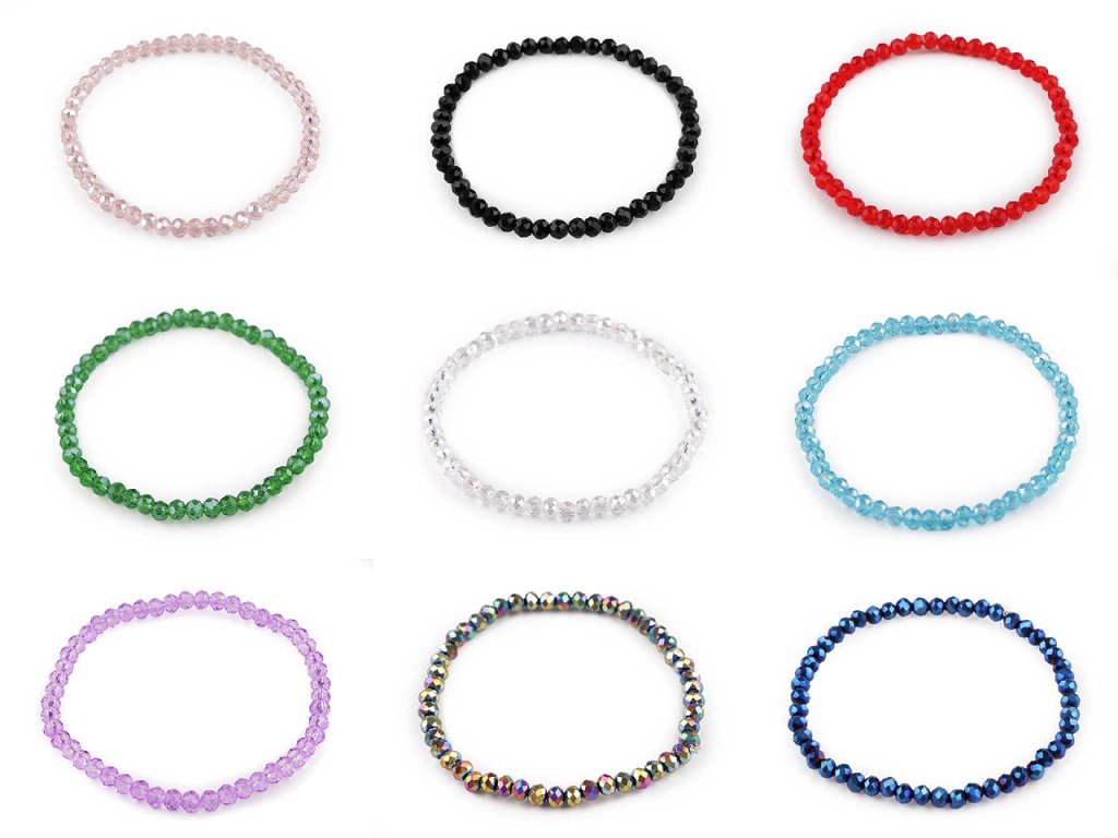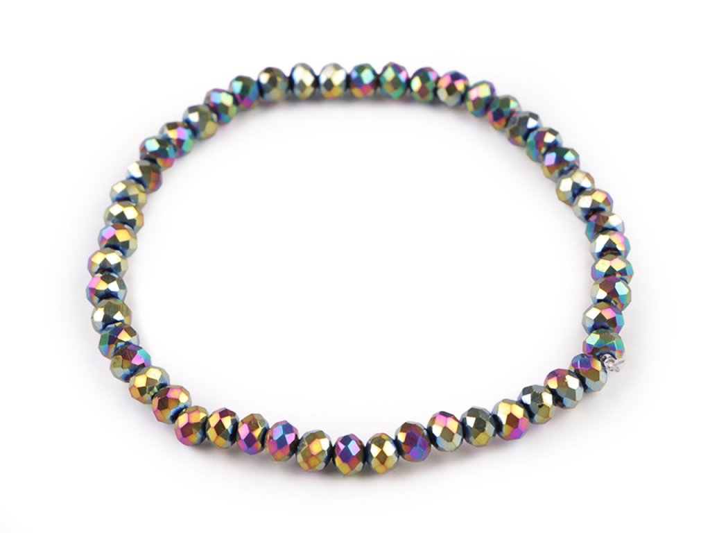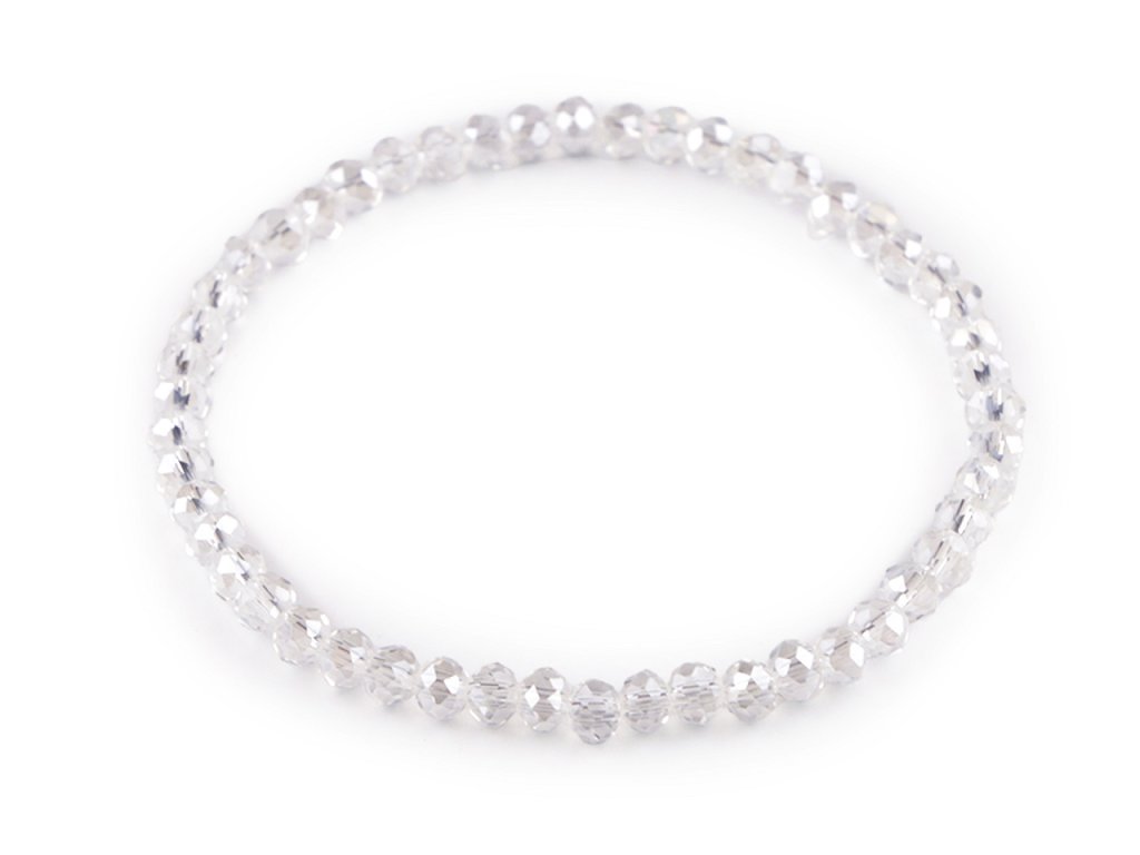 Elegantní náramek ze skleněných broušených korálků oceníte pro jeho třpyt i efektní vzhled. Precizní brus na korálcích způsobuje působivý lesk. Díky pružence se snadno natáhne na ruku, má univerzální velikost.
