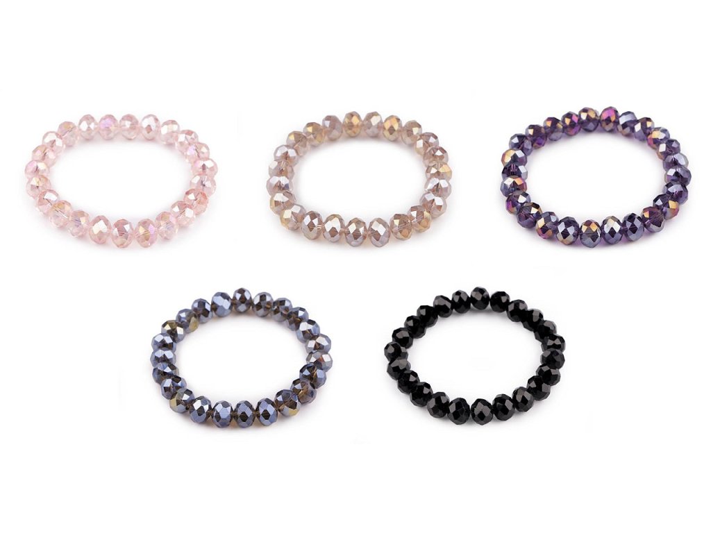Náramek ze skleněných broušených korálků s AB efektem je velice efektní a elegantní. Precizní brus na korálcích způsobuje působivý třpyt a lesk. Díky pružence má univerzální velikost, snadno se natáhne na ruku.