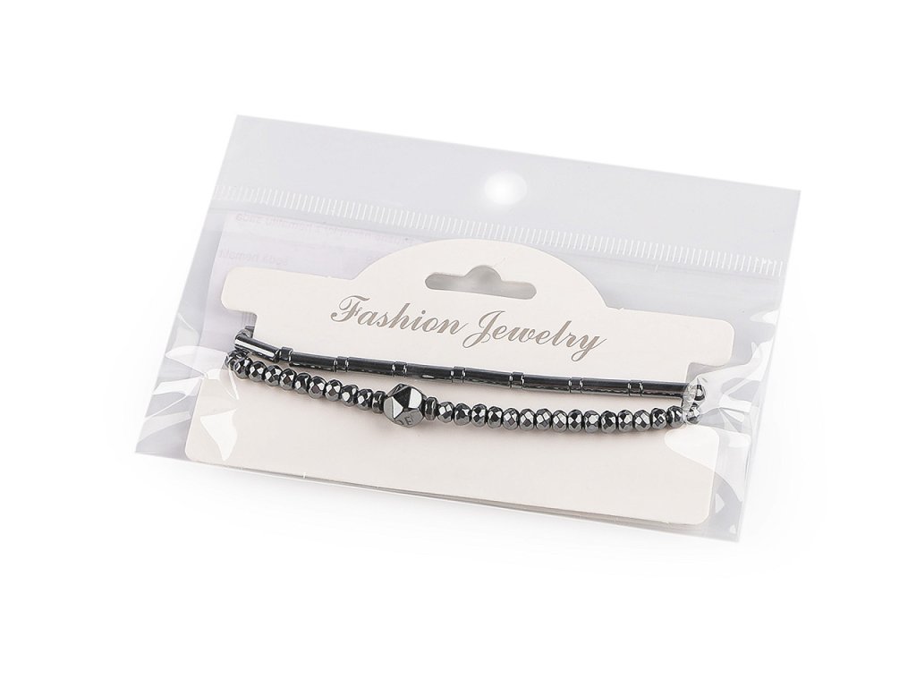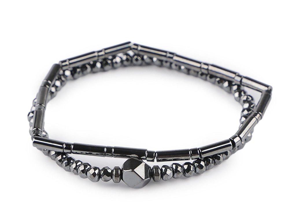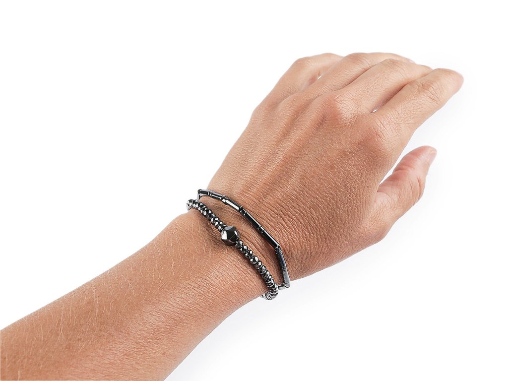 Sada 2 elegantních náramků vyrobených z korálků pokoveného hematitu. Díky pružence se náramky snadno natahují na ruku, mají univerzální velikost. Patří mezi šperky, které díky své zajímavé povrchové úpravě zaujmou na první pohled. Náramky potěší každou ženu, jsou dárkem, se kterým nešlápnete vedle. Hodí se k běžnému nošení i slavnostním příležitostem, skvěle podtrhnou i business styl oblékání.