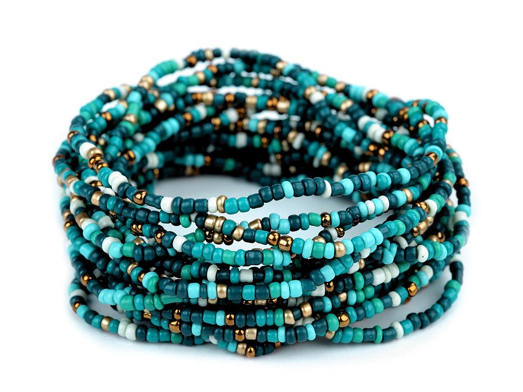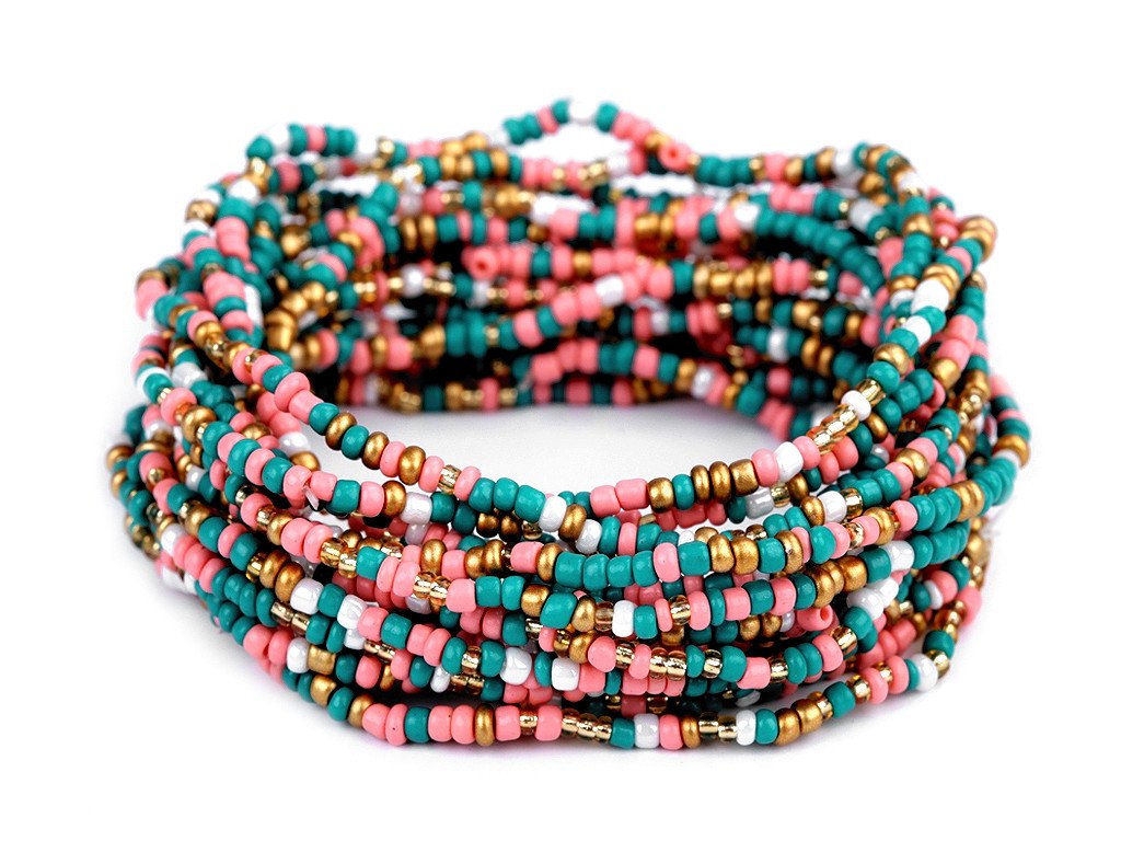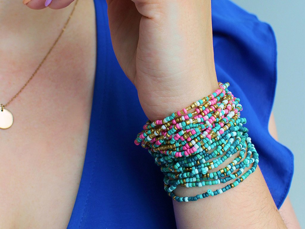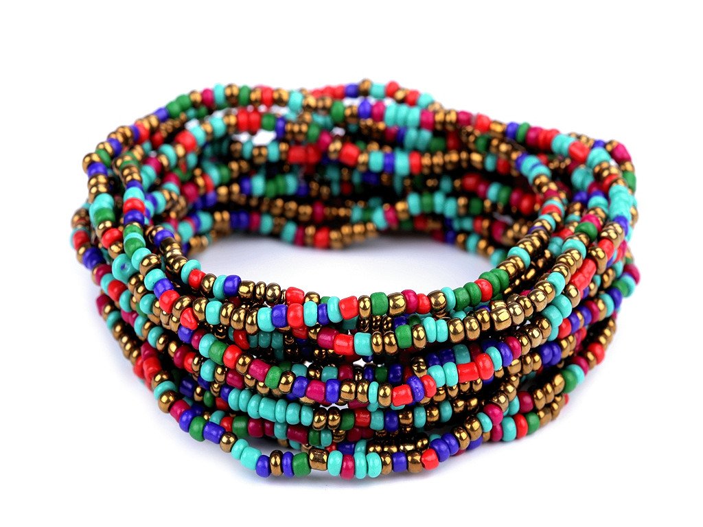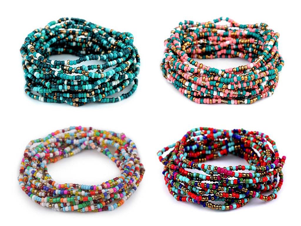 Sadu pružných rokajlových náramků můžete nosit celou najednou nebo můžete náramky rozdělit a použít je samostatně. Díky pružence se dobře navlékají na ruku.