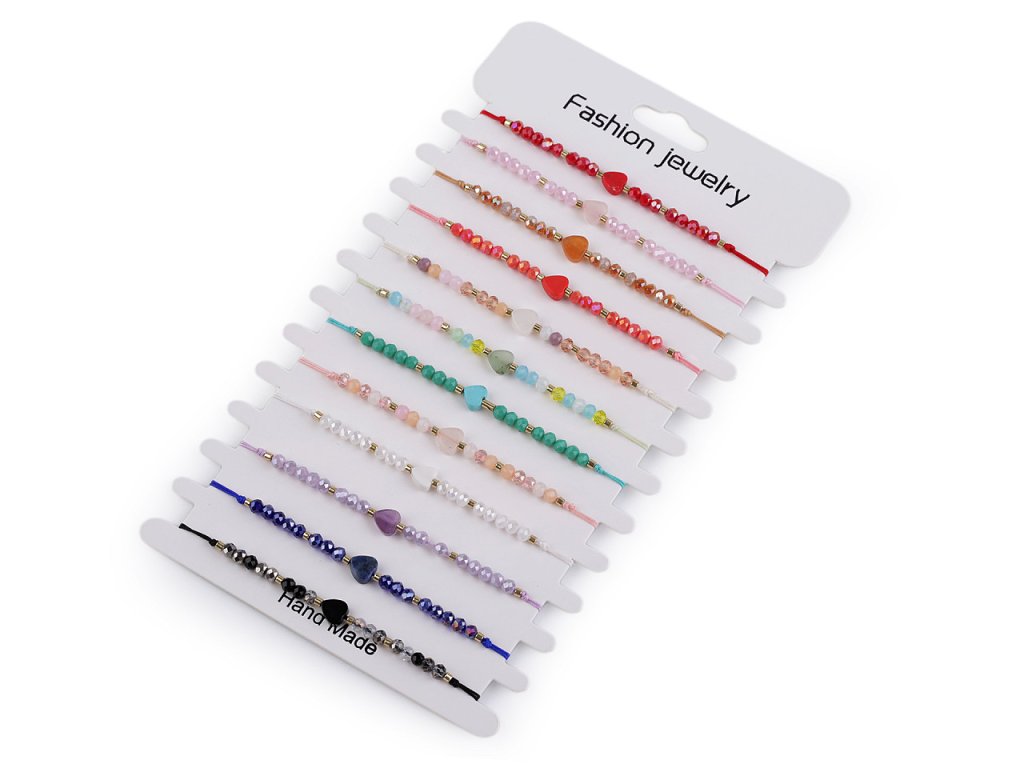 Náramky v mixu se prodávají jako sada 12 ks na papírové kartě k zavěšení.