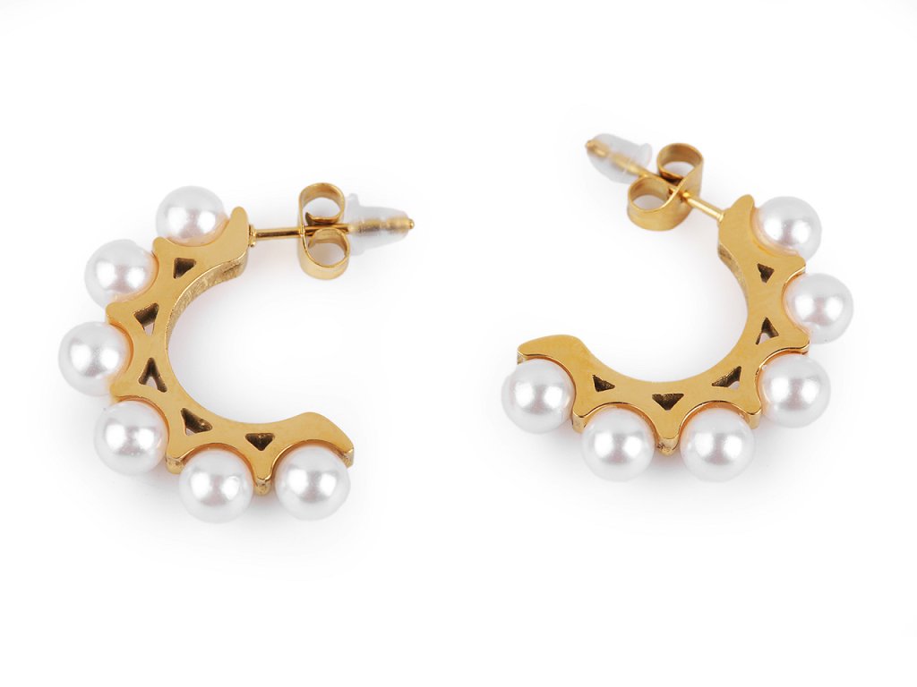 Náušnice polokroužky z kvalitní nerezové oceli představují dokonalou kombinaci moderního designu a klasické elegance. Z čelní, pohledové strany jsou ozdobené lesklými perlami. Jejich jemnost podtrhne vaši ženskost a styl. Oceníte je ke každodennímu nošení, ale hodí se i ke slavnostním příležitostem. Skvěle doplní byznys styl oblékání, ležérní outfity, ale i plesové šaty.
