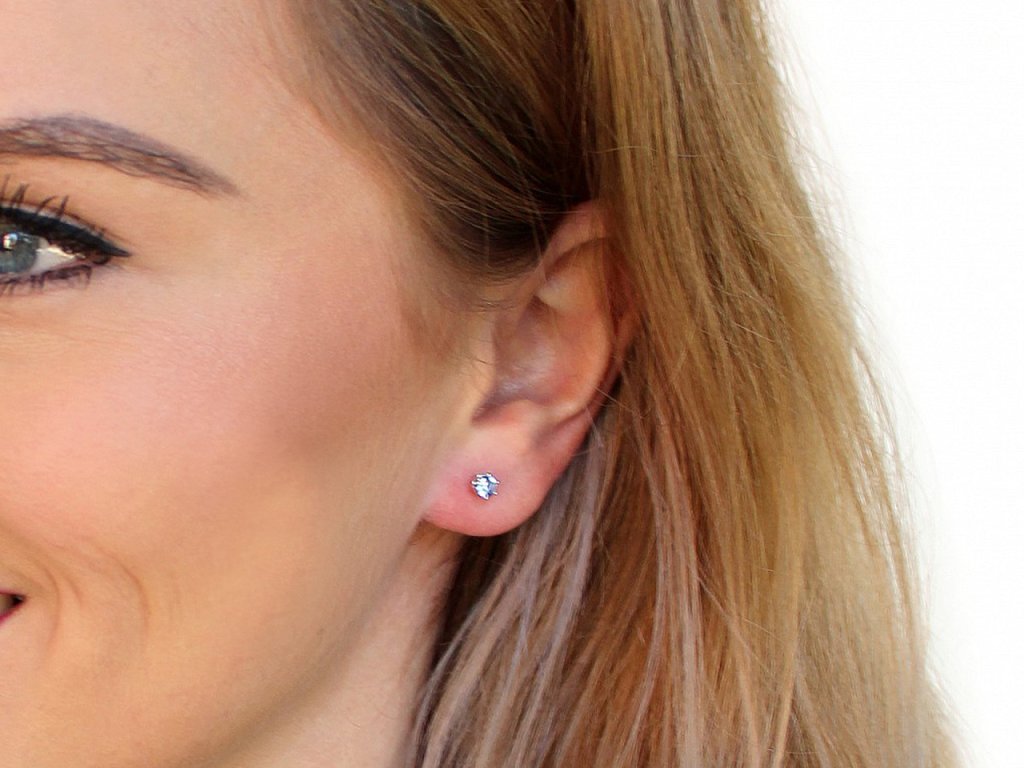Náušnice jsou puzetového typu s kovovou zarážkou.