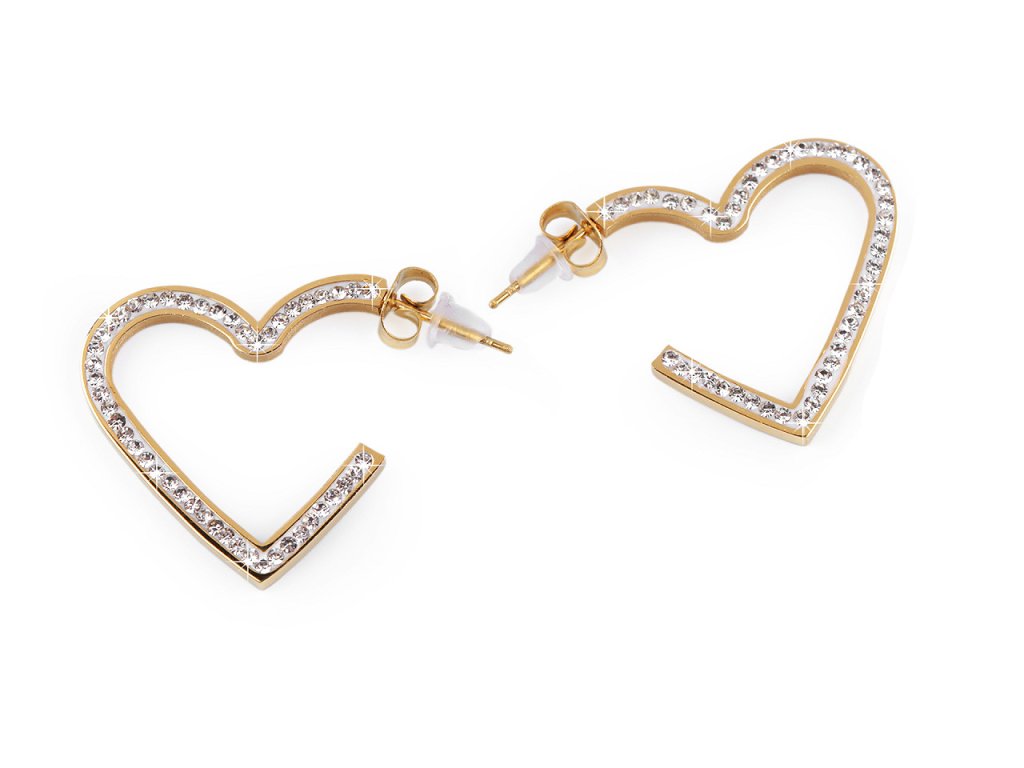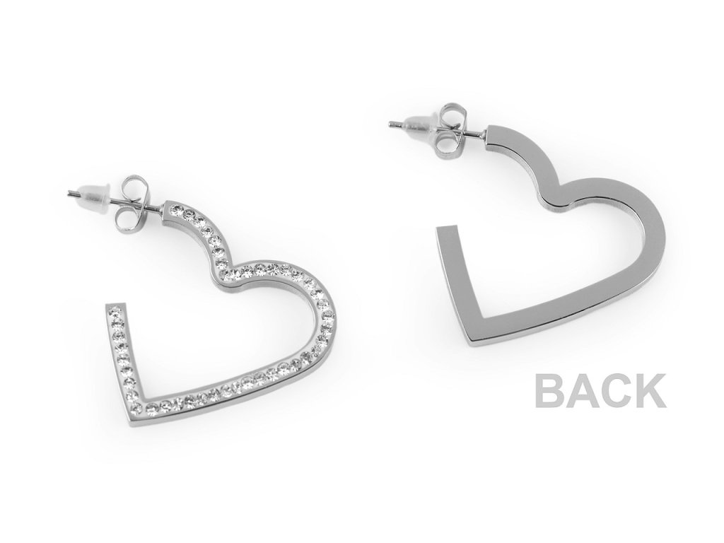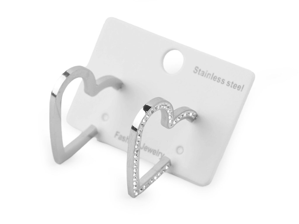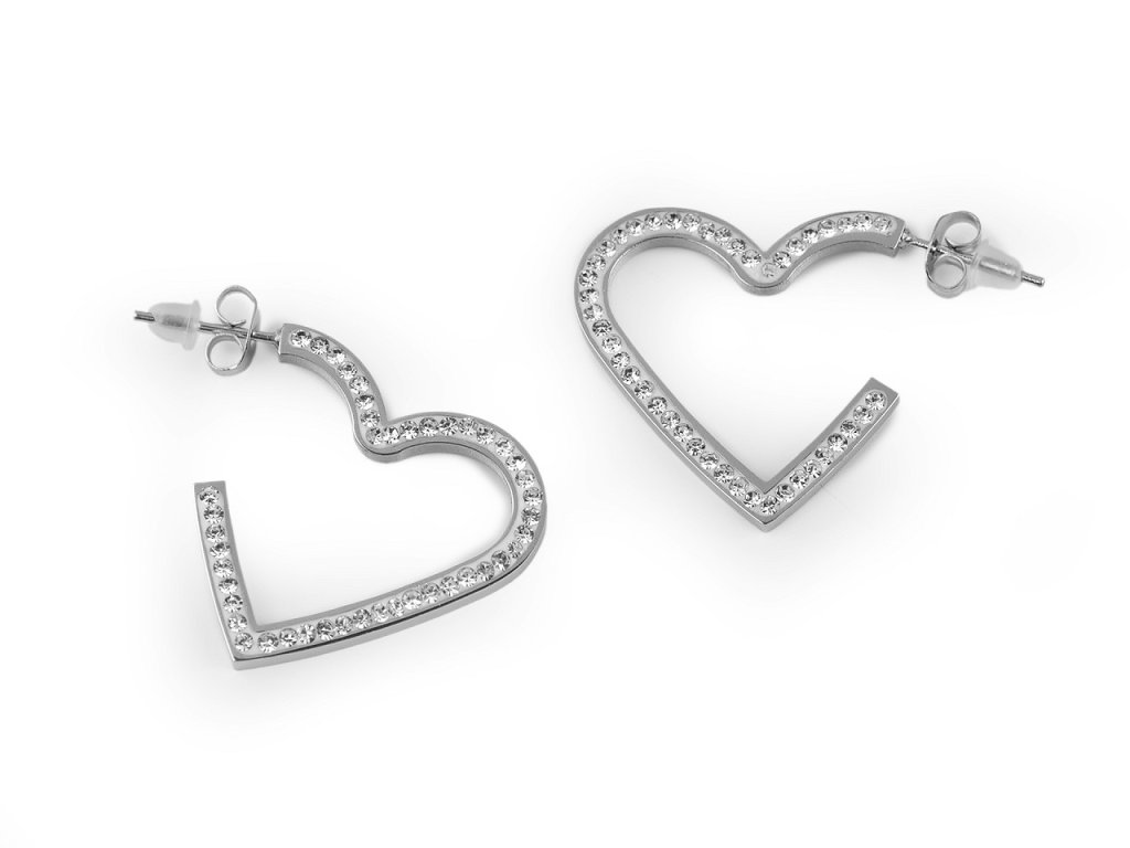 Náušnice z nerezové oceli s broušenými kamínky srdce