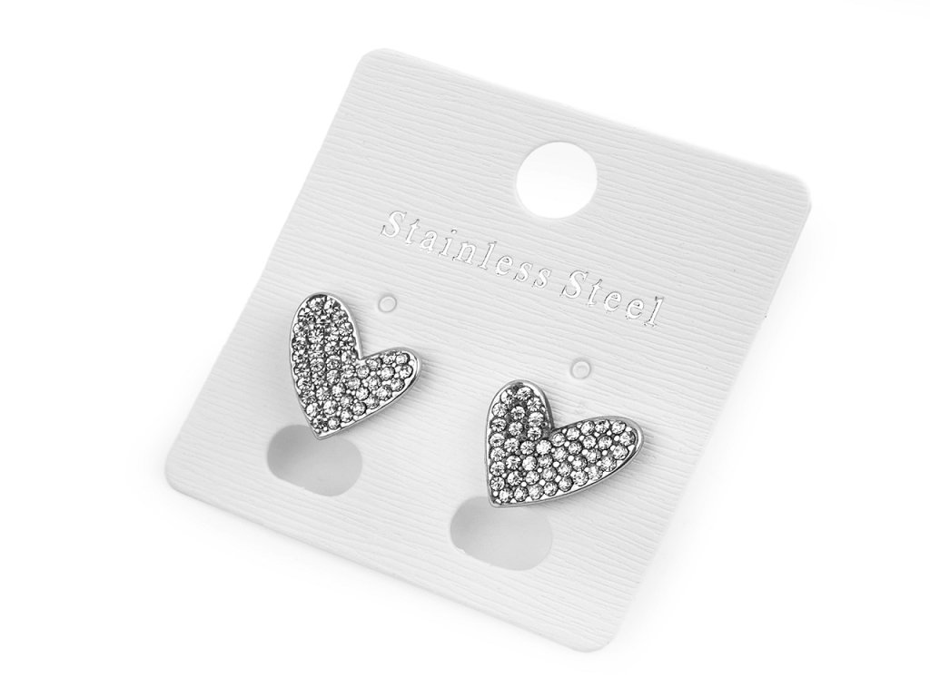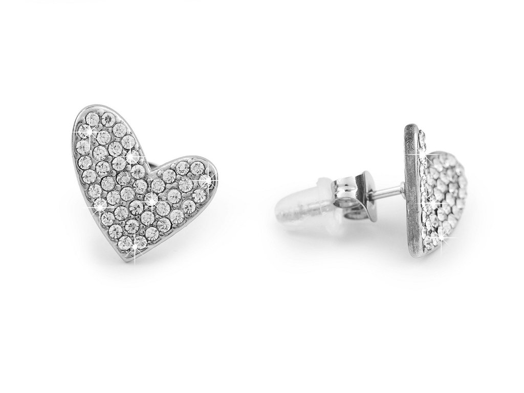 Náušnice ve tvaru srdce jsou vyrobené z kvalitní nerezové oceli. Jsou ozdobené broušenými kamínky. Oceníte je ke každodennímu nošení, skvěle doplní byznys styl oblékání, jeansovou módu i ležérní outfity.