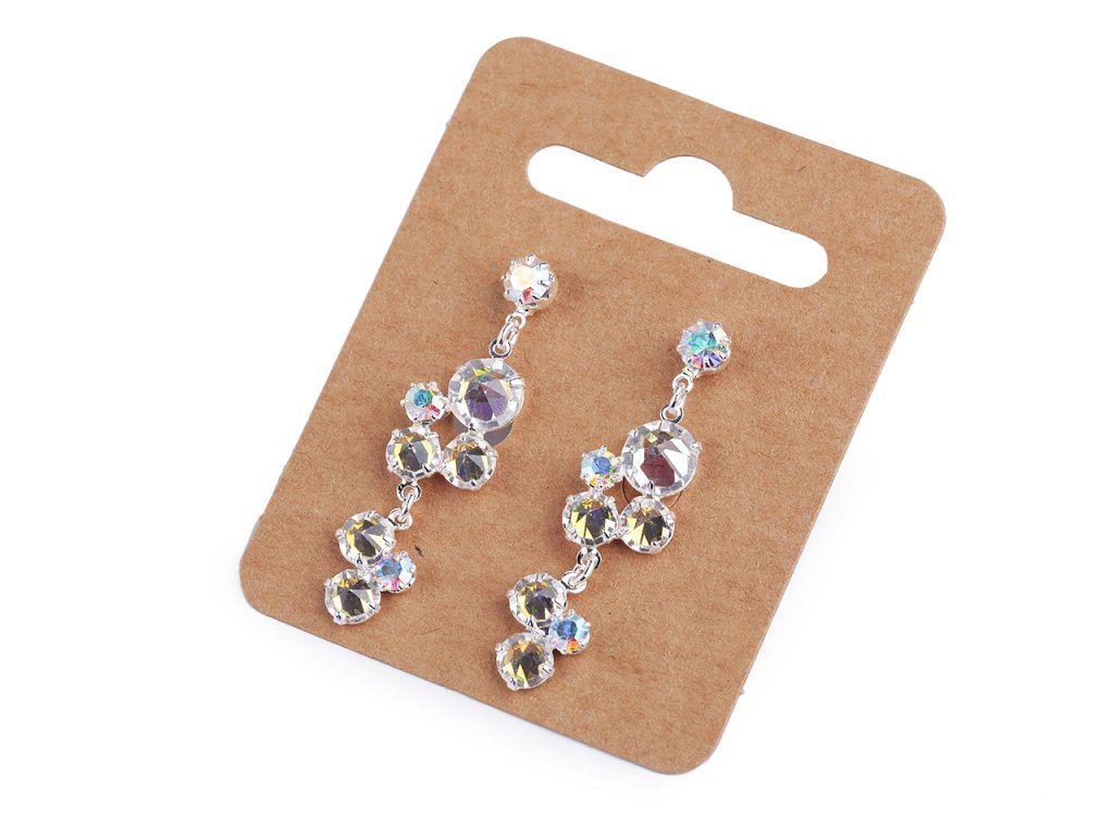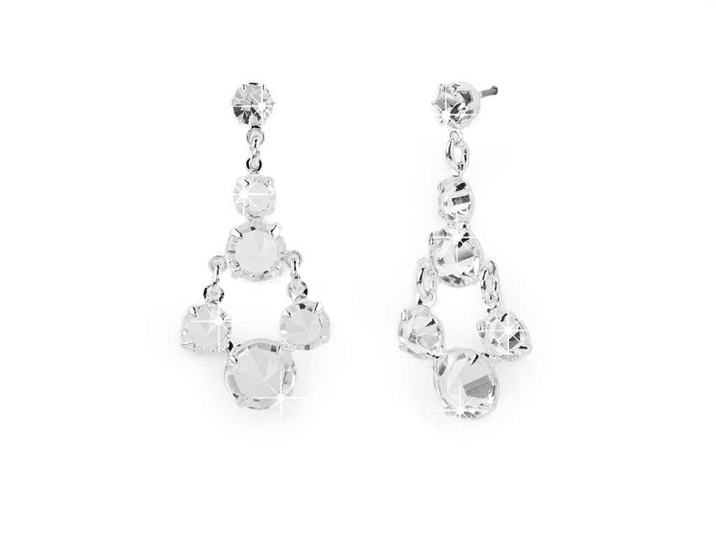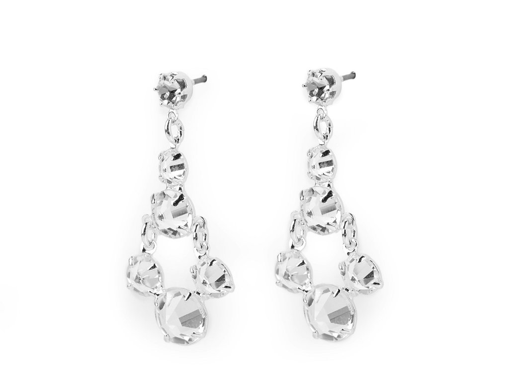 Elegantní dlouhé náušnice jsou ozdobené broušenými kamínky. Každá žena je ocení na slavnostní události, jsou nepřehlédnutelné. Skleněné broušené kamínky prvotřídní české kvality jsou pevně zasazené do kovového lůžka. Na slunci i umělém světle se náušnice zajímavě třpytí. Kov na náušnicích má povrchovou úpravu se stříbrnou galvanizací.
