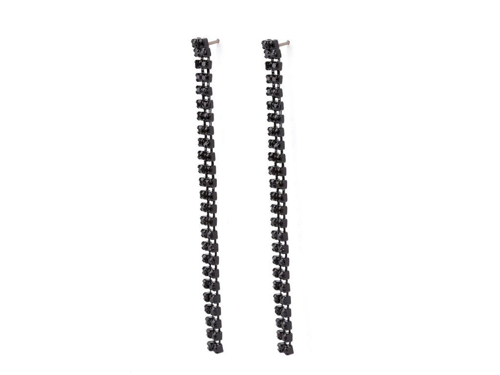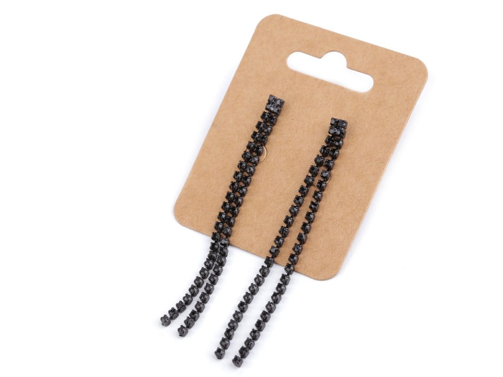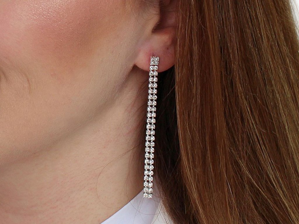 Luxusní štrasové náušnice z celosvětově proslavené jablonecké bižuterie. Jsou tvořené 2 řadami dlouhých třásní. Opticky protáhnou a zeštíhlí linii šíje. Jsou vyrobené z tzv. křišťálového skla, které se vyznačuje vysokým leskem, především při dopadu světla. Skleněné kamínky jsou zasazené do kovového lůžka a při každém pohybu hlavy se třpytí.