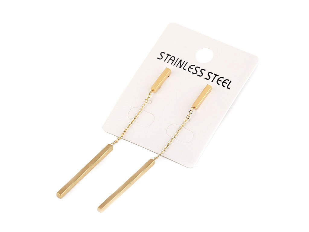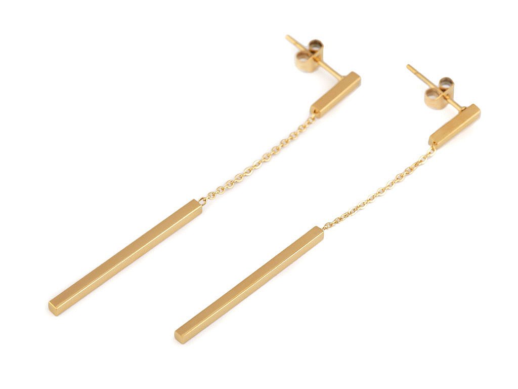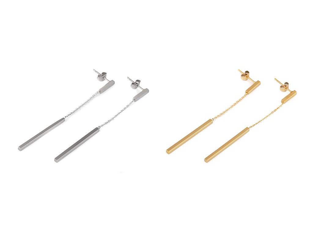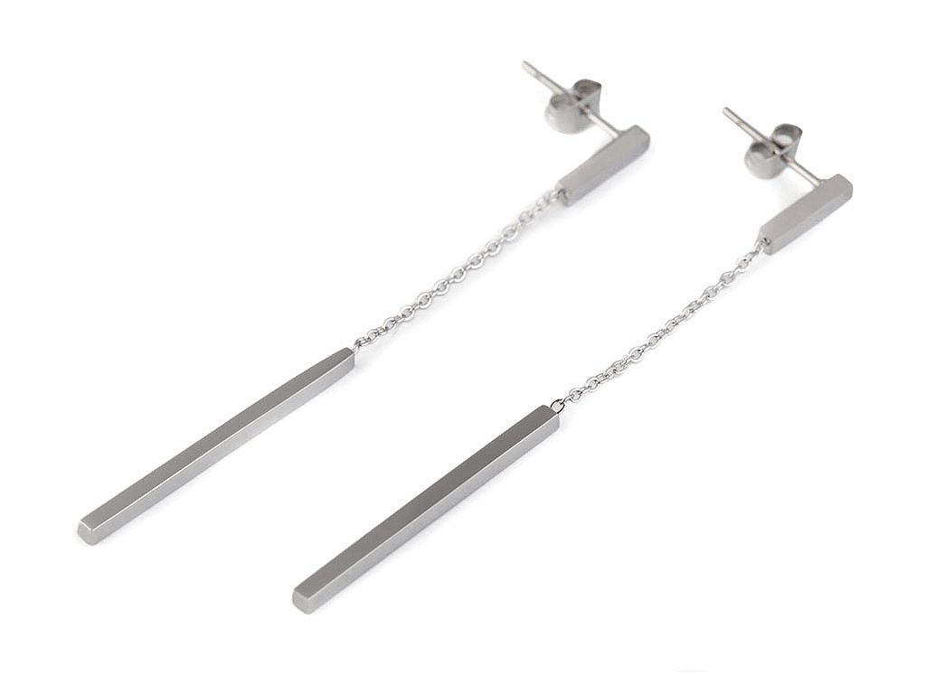 Efektní visací náušnice z kvalitní nerezové oceli protáhnou a zeštíhlí linii šíje. Jejich minimalistický styl dotáhne každý outfit k dokonalosti. Mají vysoký zrcadlový lesk.