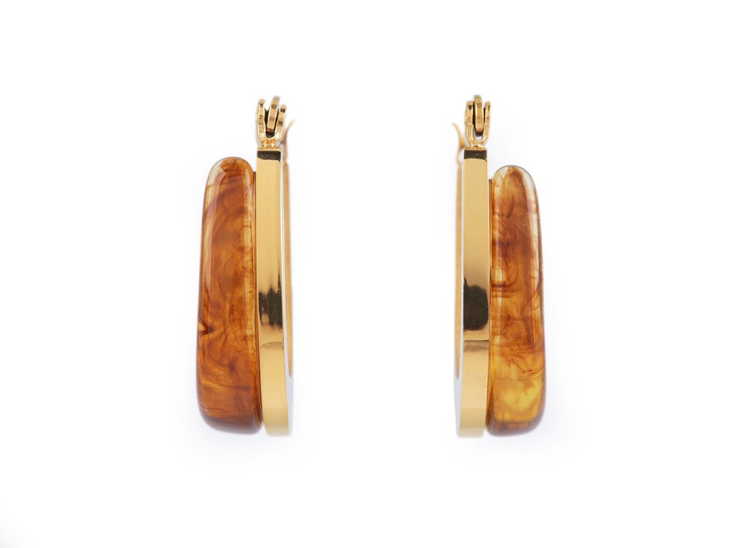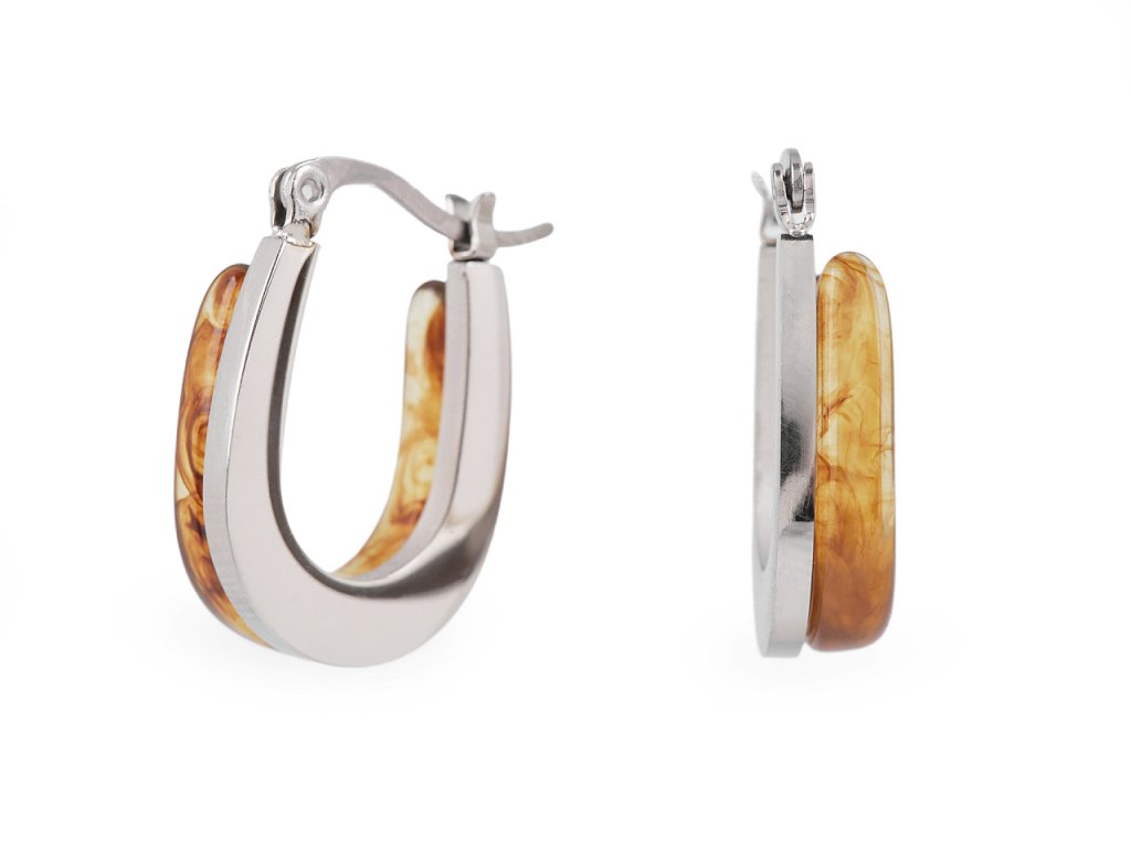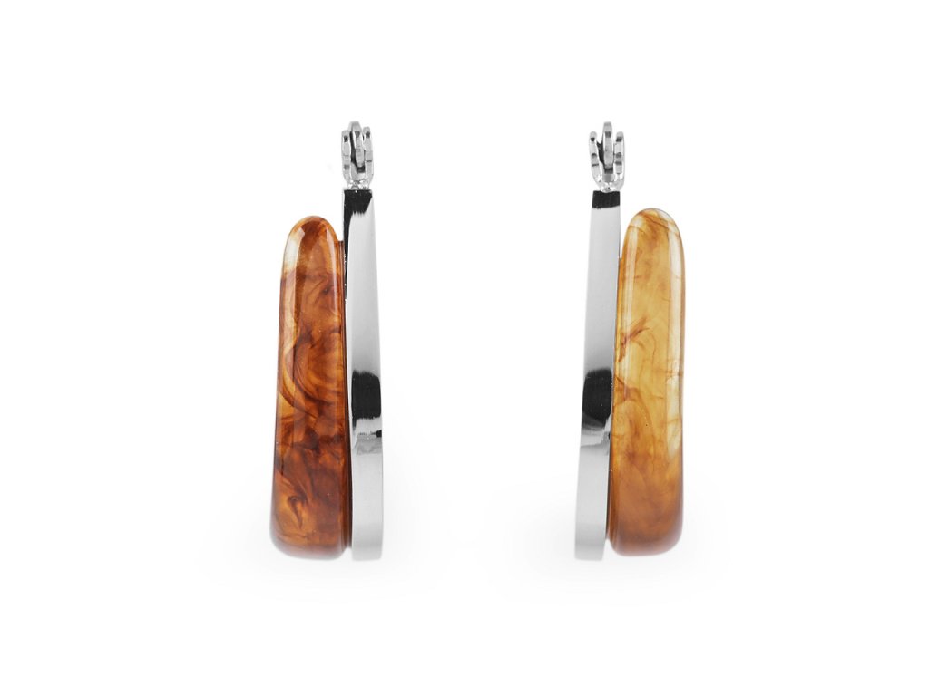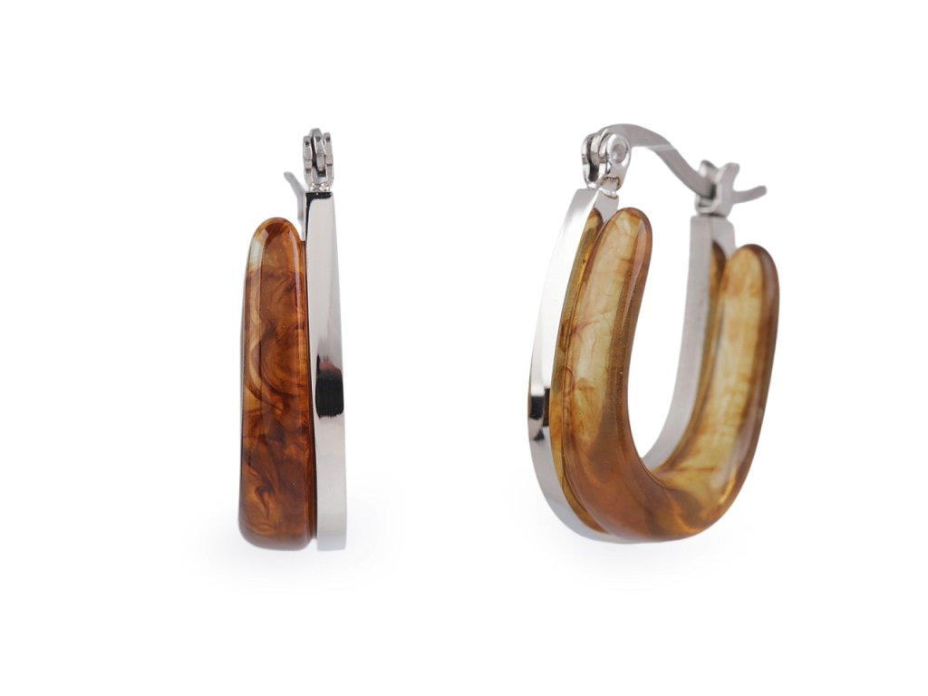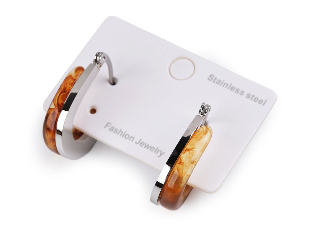 Elegantní náušnice z kvalitní nerezové oceli v kombinaci s imitací jantaru skvěle doplní byznys styl oblékání, ležérní outfity i společenské šaty. Mají vysoký lesk, díky imitace jantaru jsou velice atraktivní.