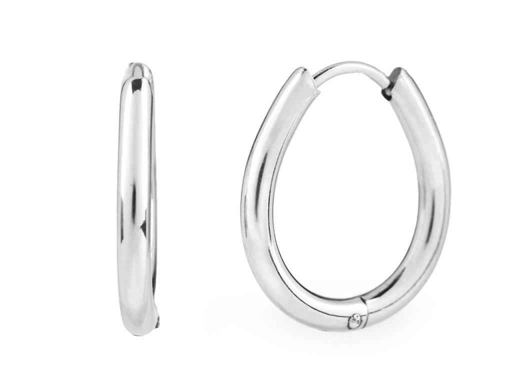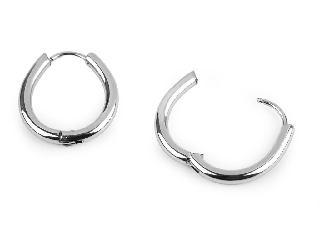 Elegantní kruhové náušnice mají moderní oválný tvar. Jsou vyrobené z kvalitní nerezové oceli. Jsou hladké, mají vysoký zrcadlový lesk. Hodí se k jakémukoliv outfitu, oblíbíte si je na každodenní nošení.