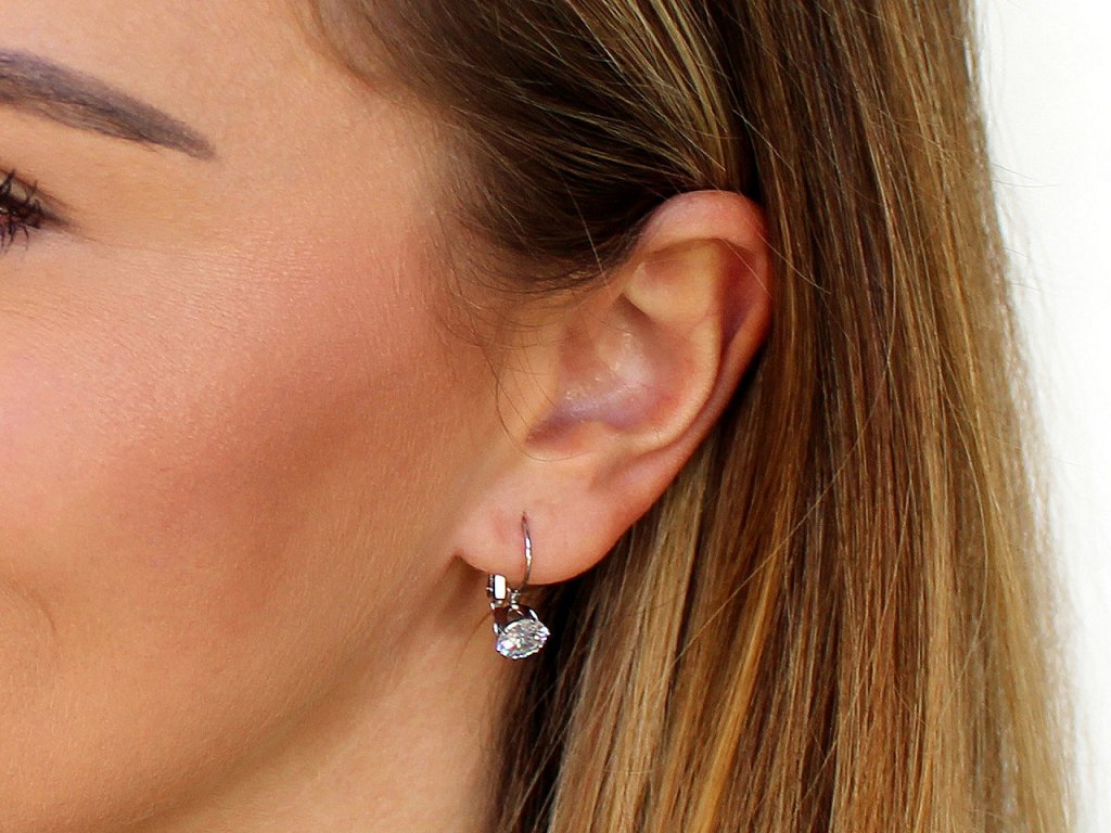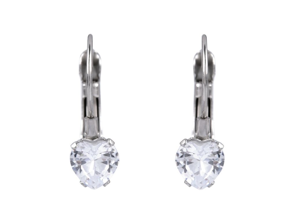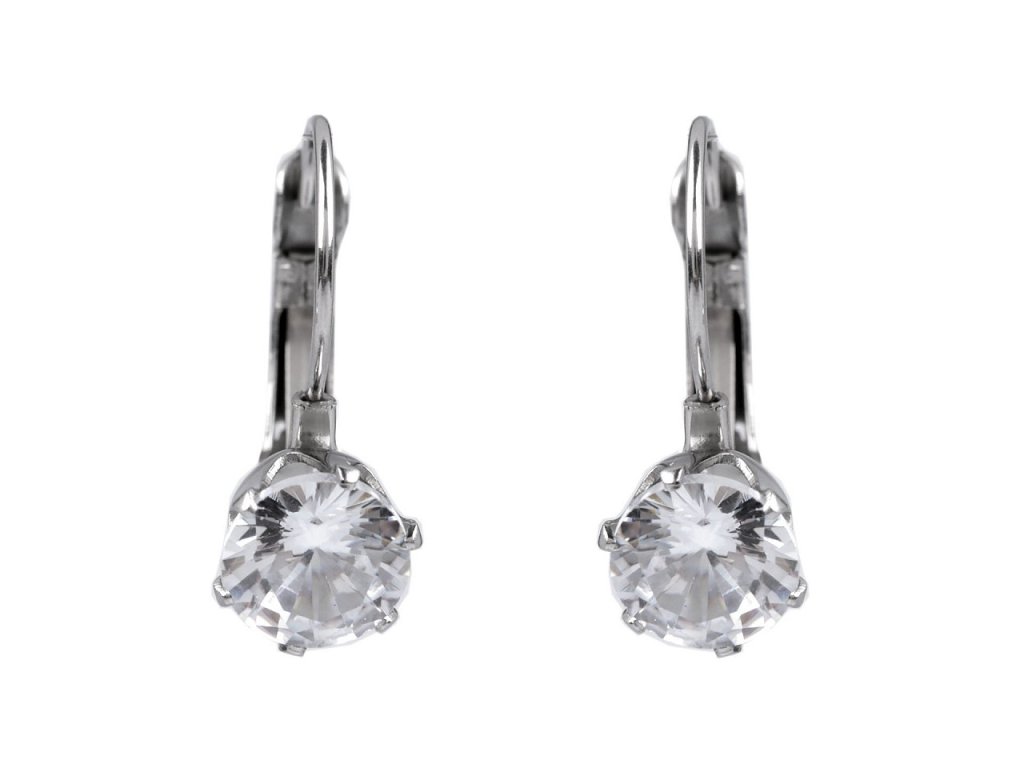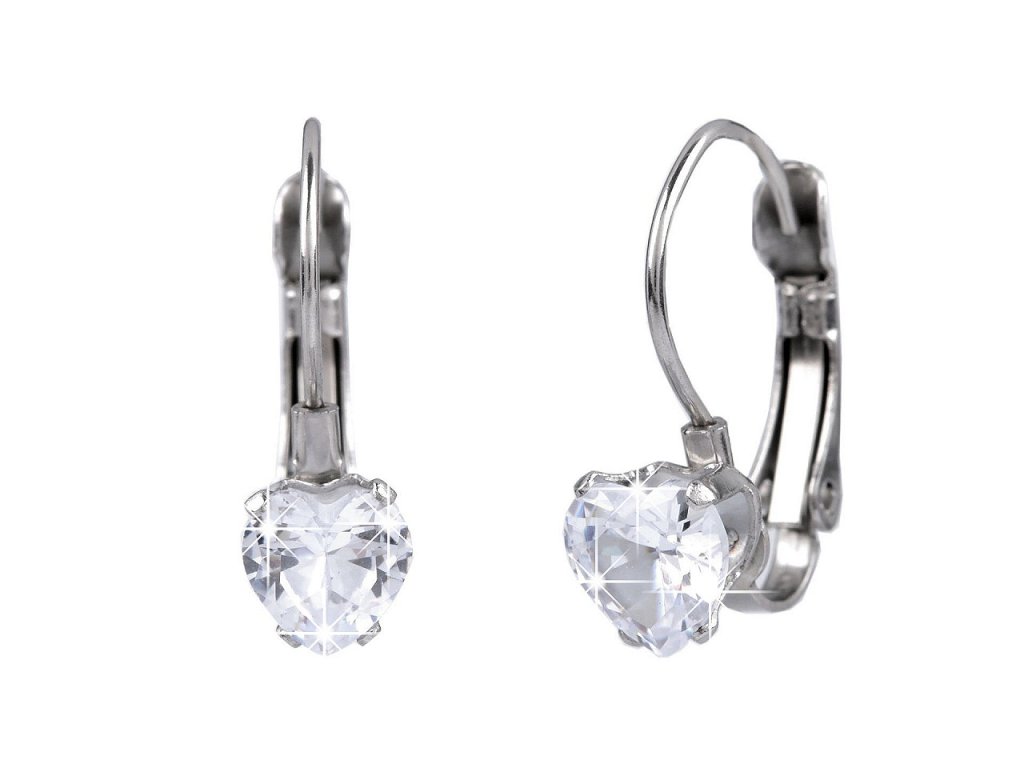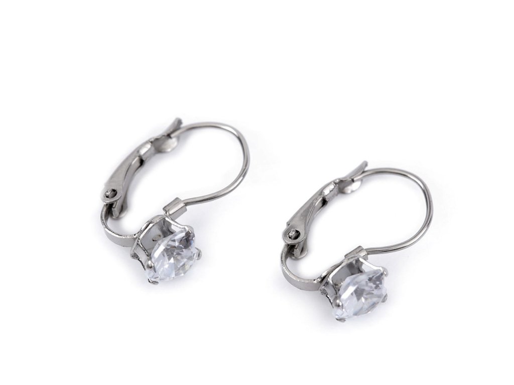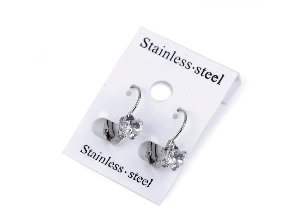 Visací náušnice jsou vyrobené z kvalitní nerezové oceli. Zdobí je třpytivý broušený kamínek. Mají mechanické zapínání. Jsou vhodné i pro menší slečny.