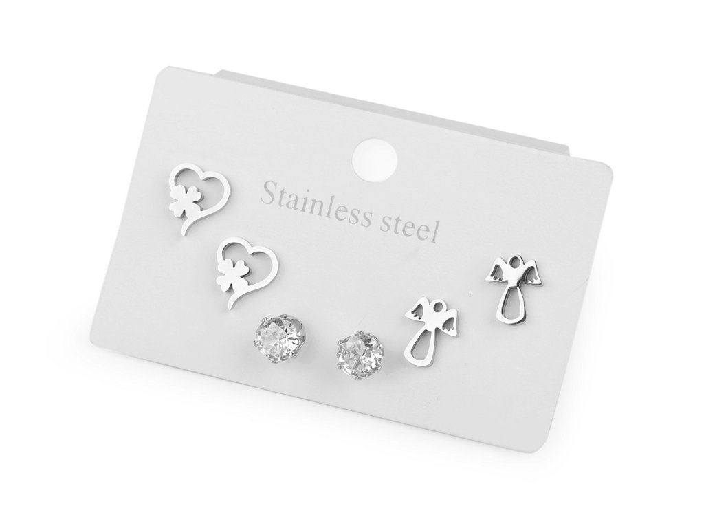 Sada decentních náušnic, které využijete doslova každý den. Jsou vyrobené z kvalitní nerezové oceli. Mají vysoký zrcadlový lesk. Náušnice broušené kamínky se poutavě třpytí.