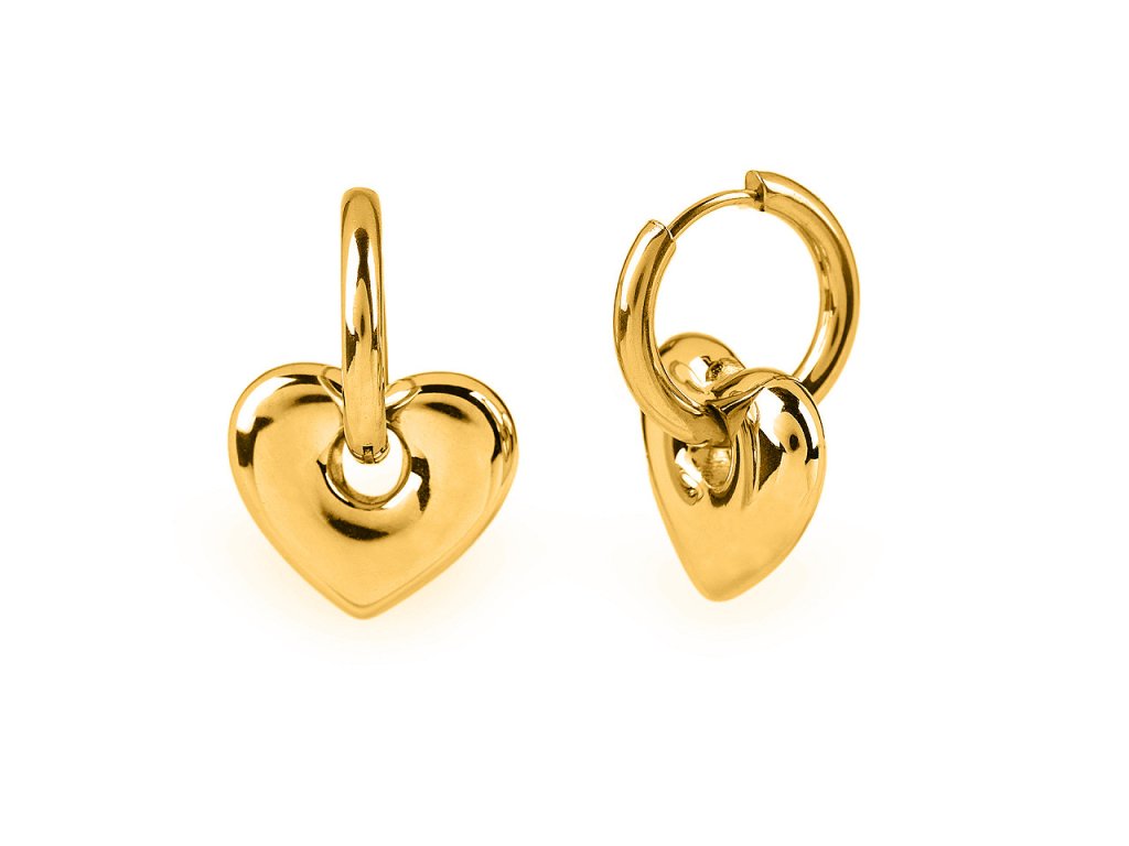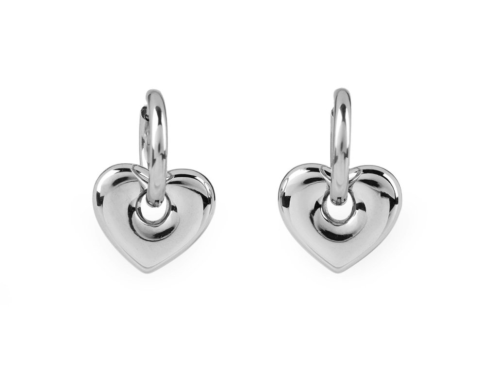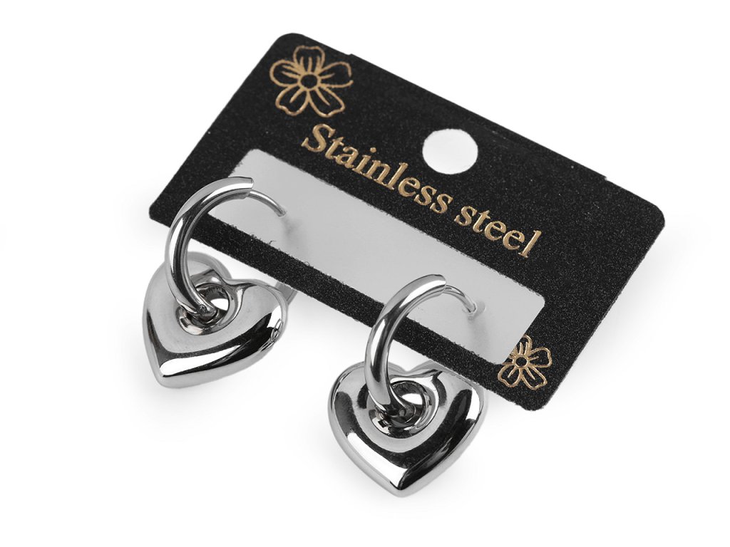 Náušnice kroužky jsou vyrobené z kvalitní nerezové oceli. Dole jsou ozdobené přívěskem srdíčka, jsou velice elegantní. Oceníte je ke každodennímu nošení, ale hodí se i ke slavnostním příležitostem. Skvěle doplní byznys styl oblékání, jeansovou módu, ležérní outfity i společenské šaty.