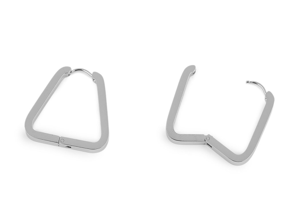 Elegantní náušnice z kvalitní nerezové oceli mají moderní trojúhelníkový tvar. Jsou hladké, mají vysoký lesk. Hodí se k jakémukoliv outfitu, perfektně doplní i byznys styl oblékání, oblíbíte si je na každodenní nošení.