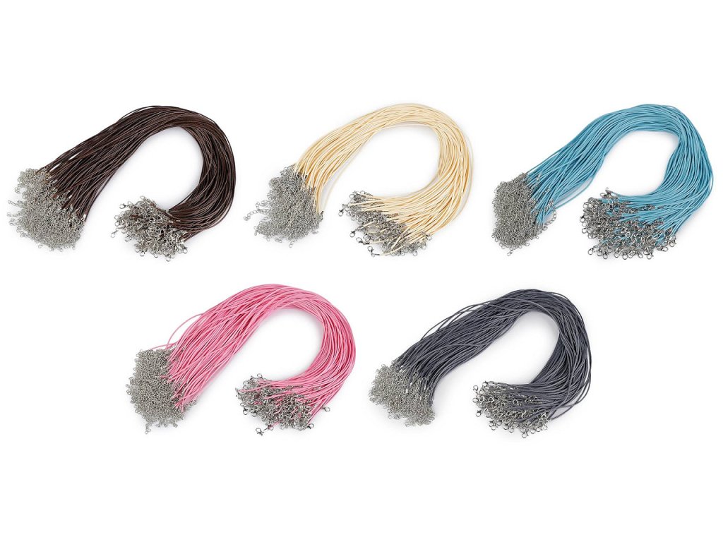 Šňůrka je určená k zavěšení přívěsků. Délka 45 cm + 5 cm adjustační řetízek. Karabinka 5 x 10 mm. Šňůra Ø1,5 mm. V případě, že přívěsek nebude možno díky koncovce navléci, tak lze kleštěmi pružinovou koncovku rozevřít, navléci přívěsek a opět koncovku uzavřít.