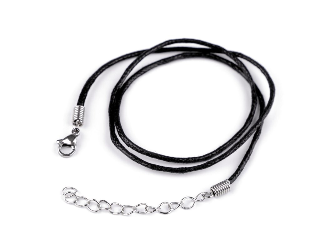 Voskovaná šňůrka s karabinkou z nerezové oceli délka 45 cm