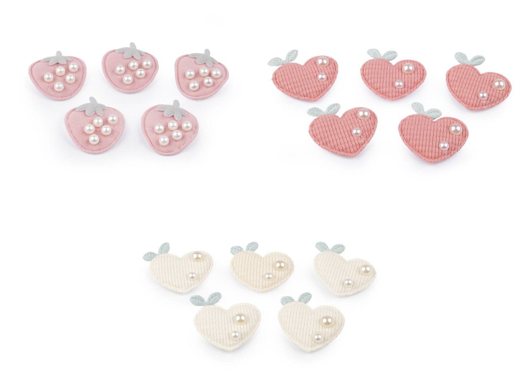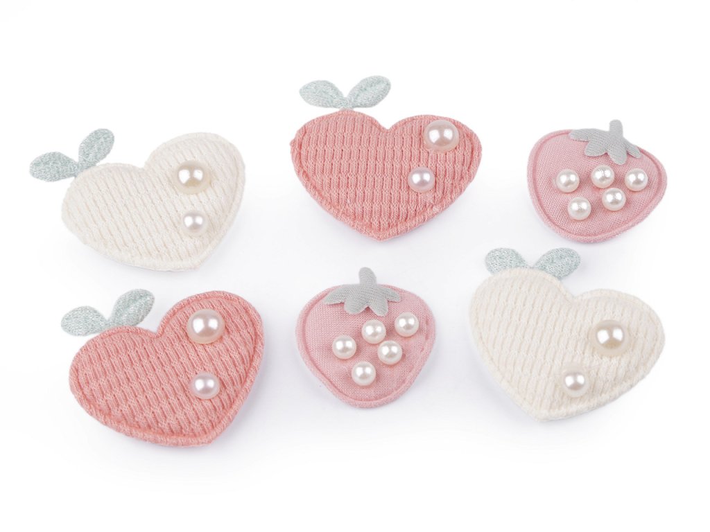 Textilní aplikace je ozdobená lesklými perlami. Je plochá, můžete ji našít nebo nalepit.