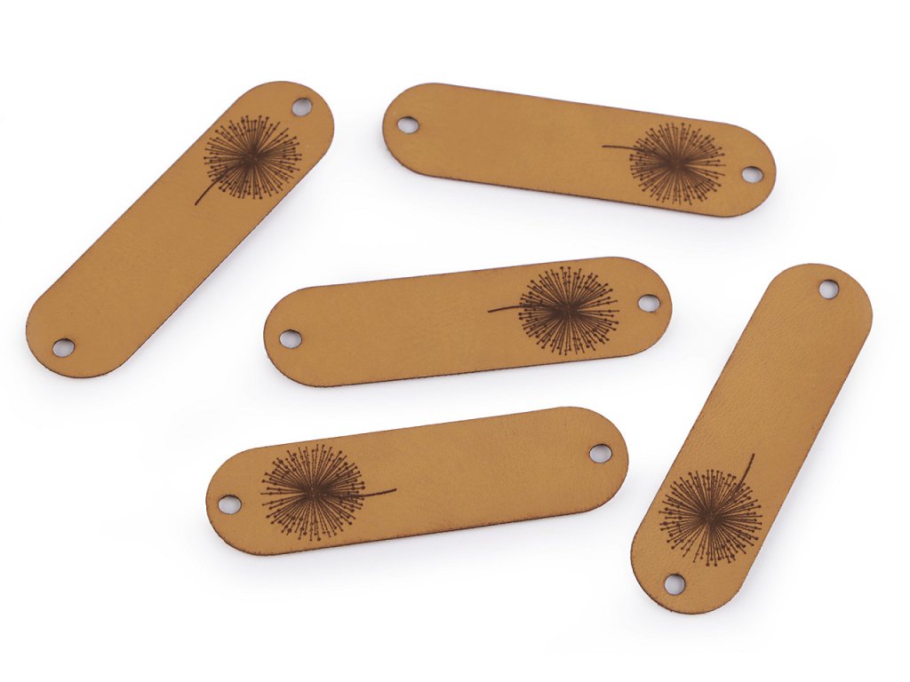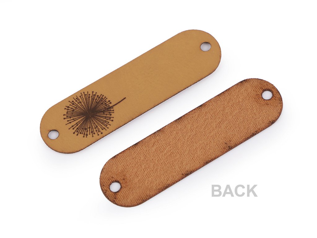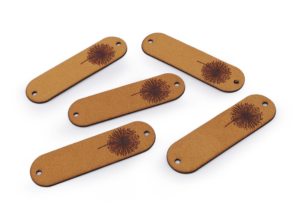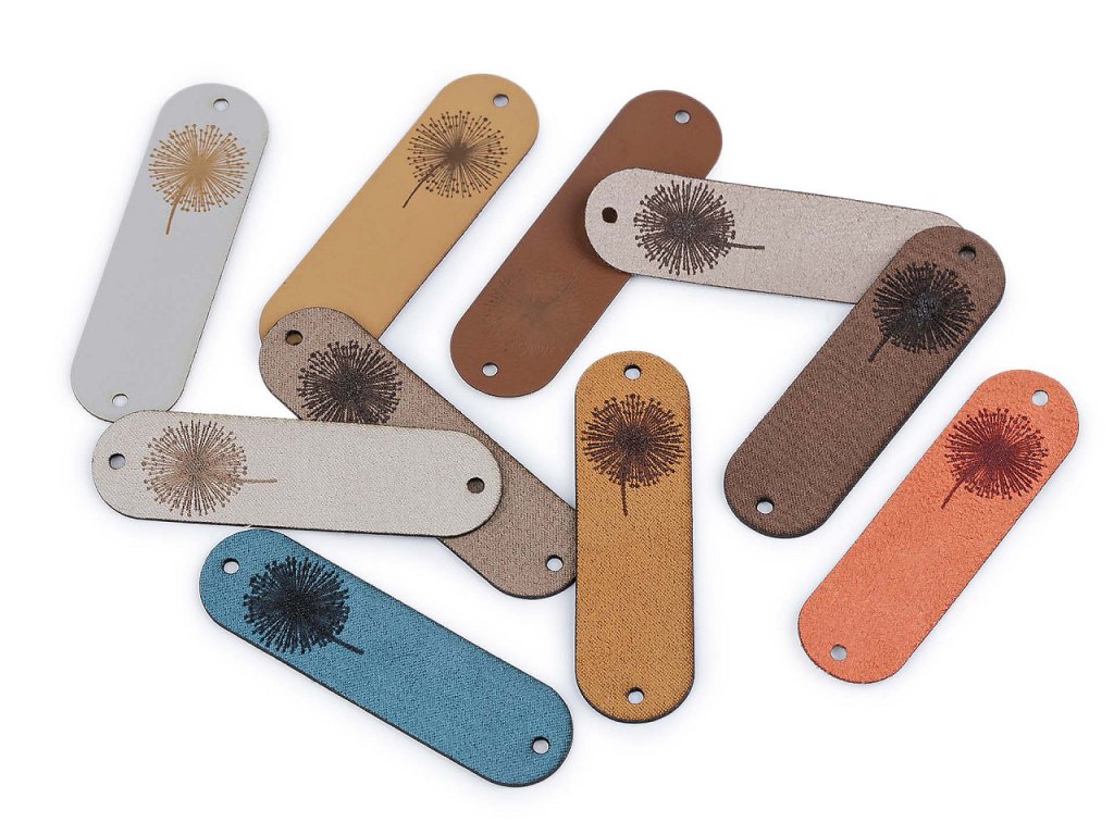 Cedulka z eko kůže je ozdobená jednostranným obrázkem odkvetlé pampelišky. Na obou koncích má otvory k přišití nebo navlečení provázku. Na dotek je nášivka měkká a poddajná, ale přitom pevná. Je pratelná při teplotě 40 °C.