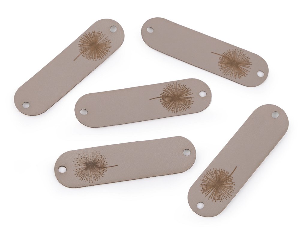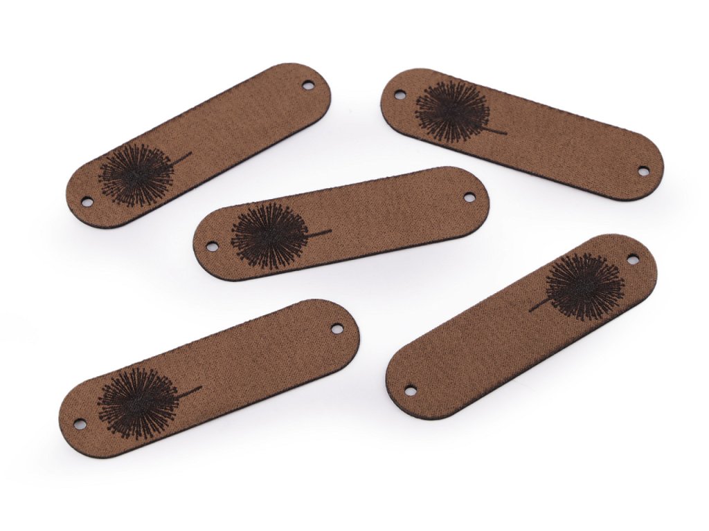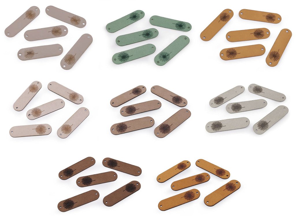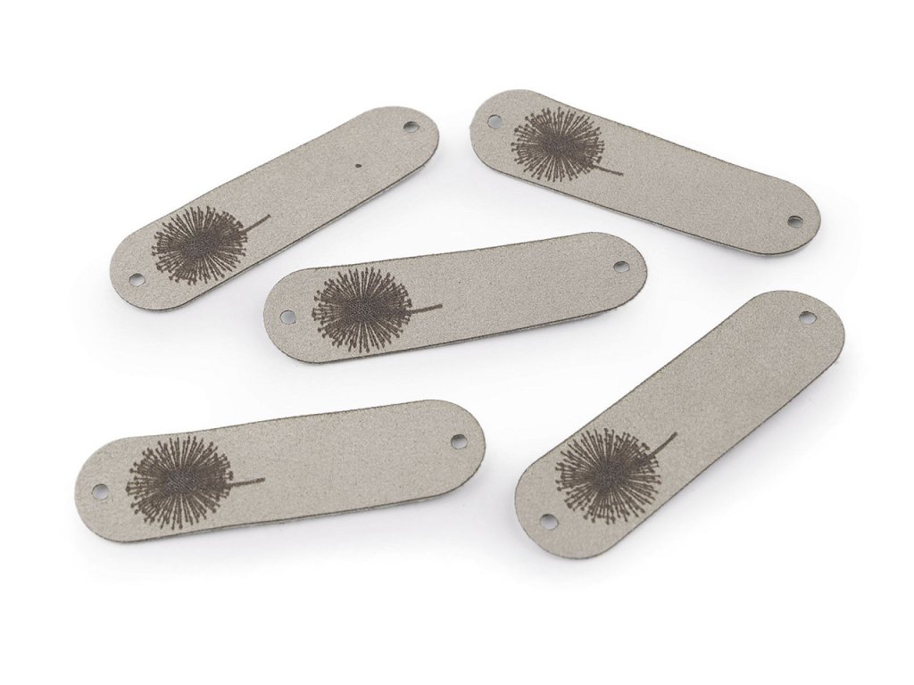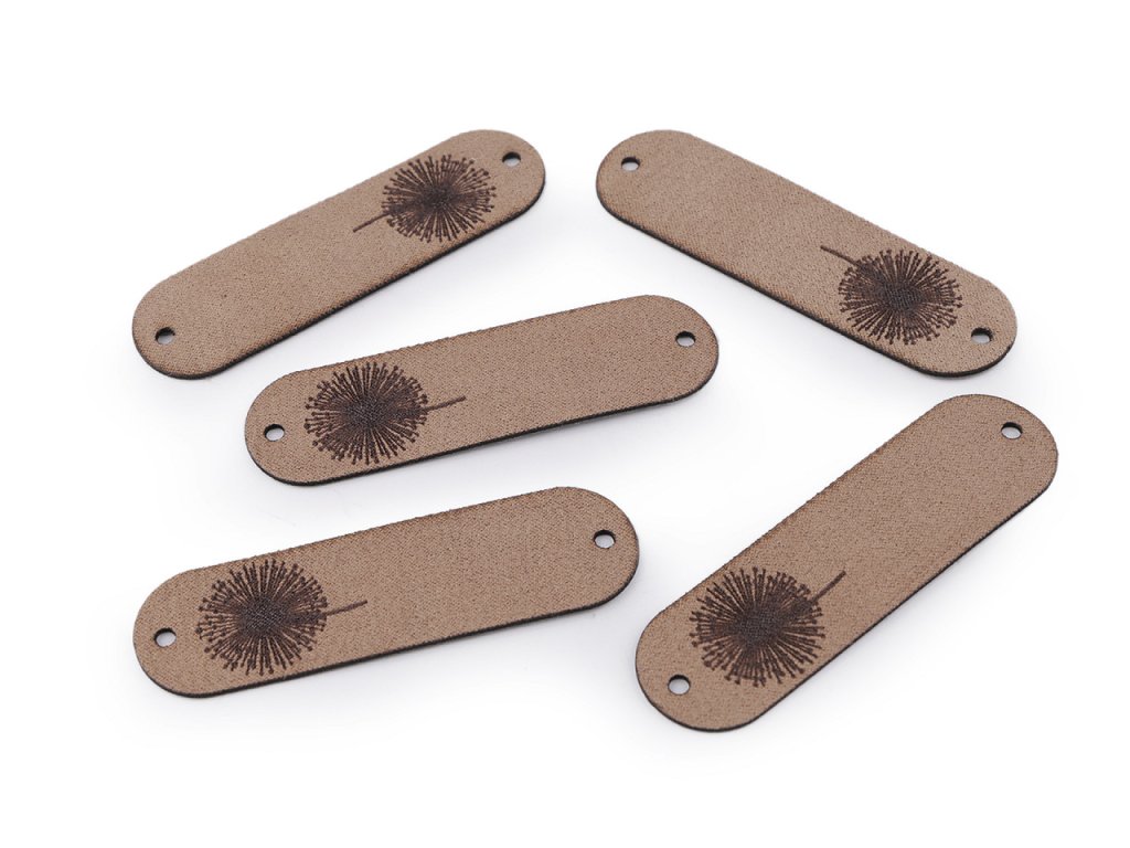 Cedulka z eko kůže je ozdobená jednostranným obrázkem odkvetlé pampelišky. Na obou koncích má otvory k přišití nebo navlečení provázku. Na dotek je nášivka měkká a poddajná, ale přitom pevná. Je pratelná při teplotě 40 °C.