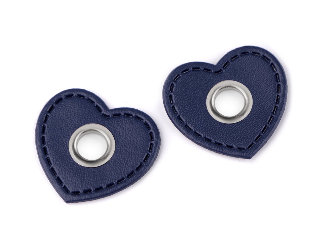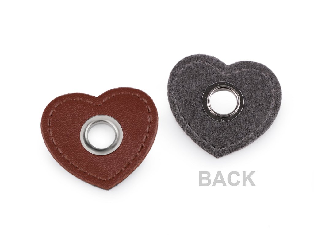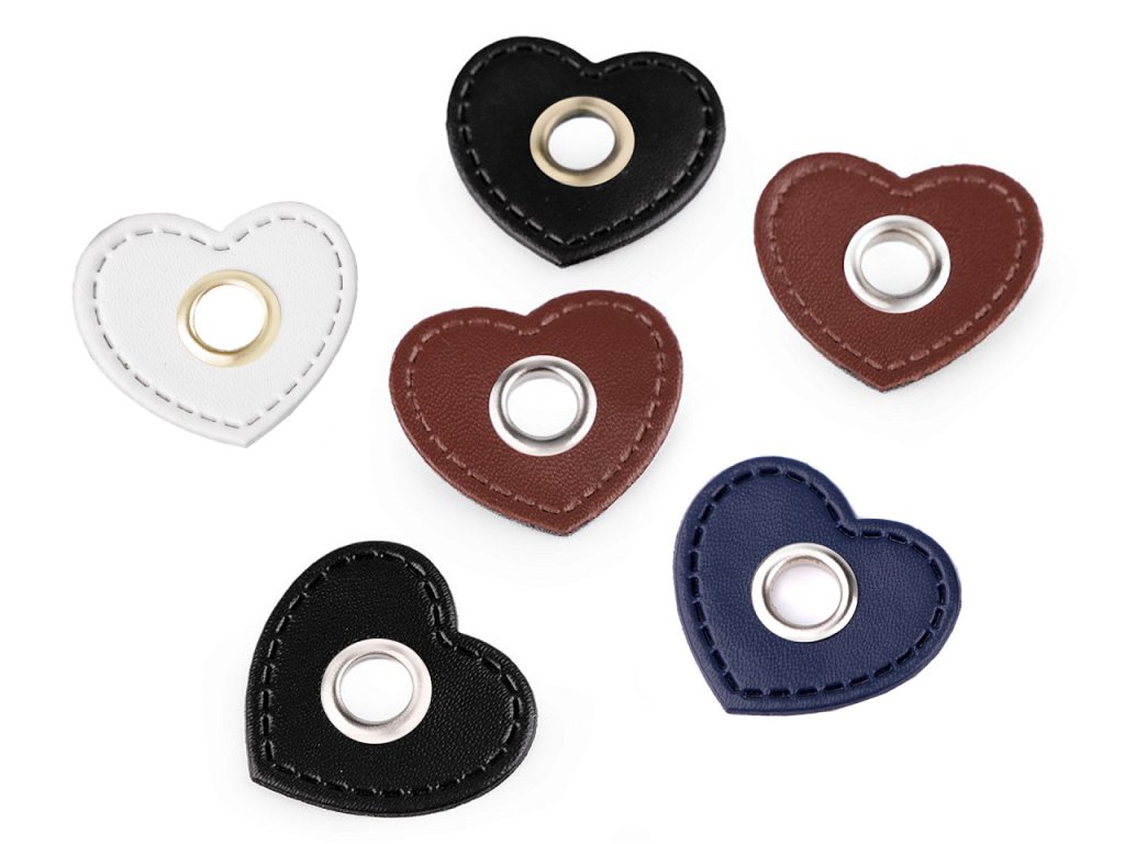 Průchodka s koženkovým srdcem k našití, průvlek 8 mm