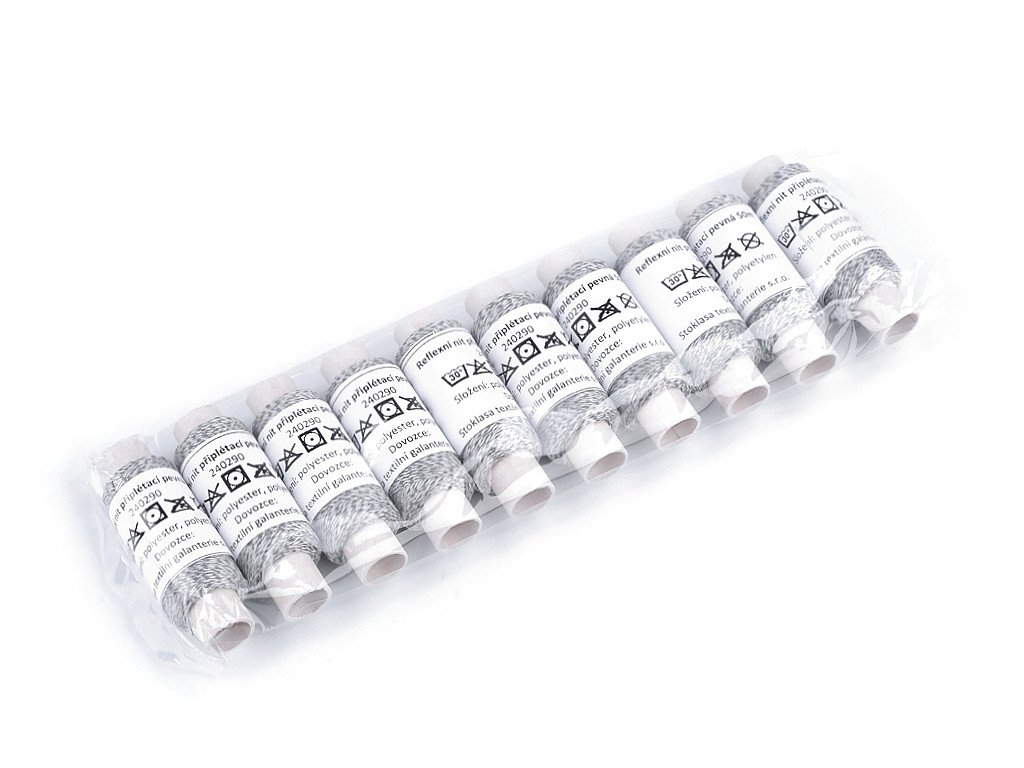 Reflexní nit je pevná, spletená ze 2 polyesterových nití a 1 nitě z polyethylenu. Zvyšuje vaši bezpečnost, za tmy odráží světla aut. Je vhodná pro připlétání do lemů čepic, rukavic, svetrů, šálů, apod.