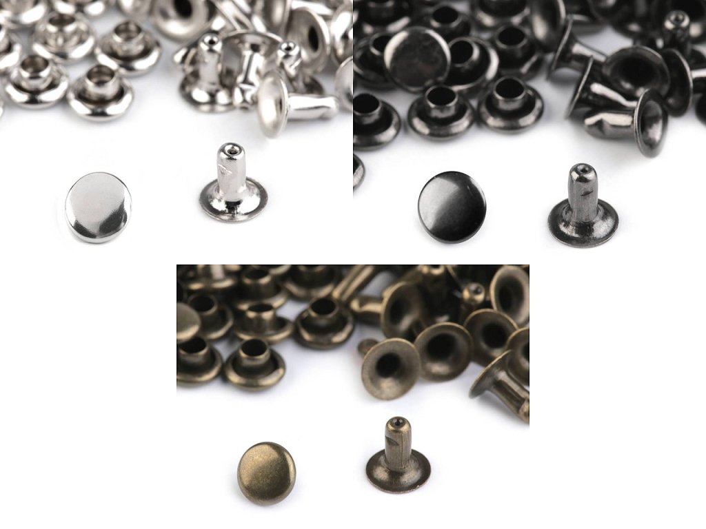 Návod k použití: Jednu část nýtu provlečete materiálem a spojíte druhou částí.